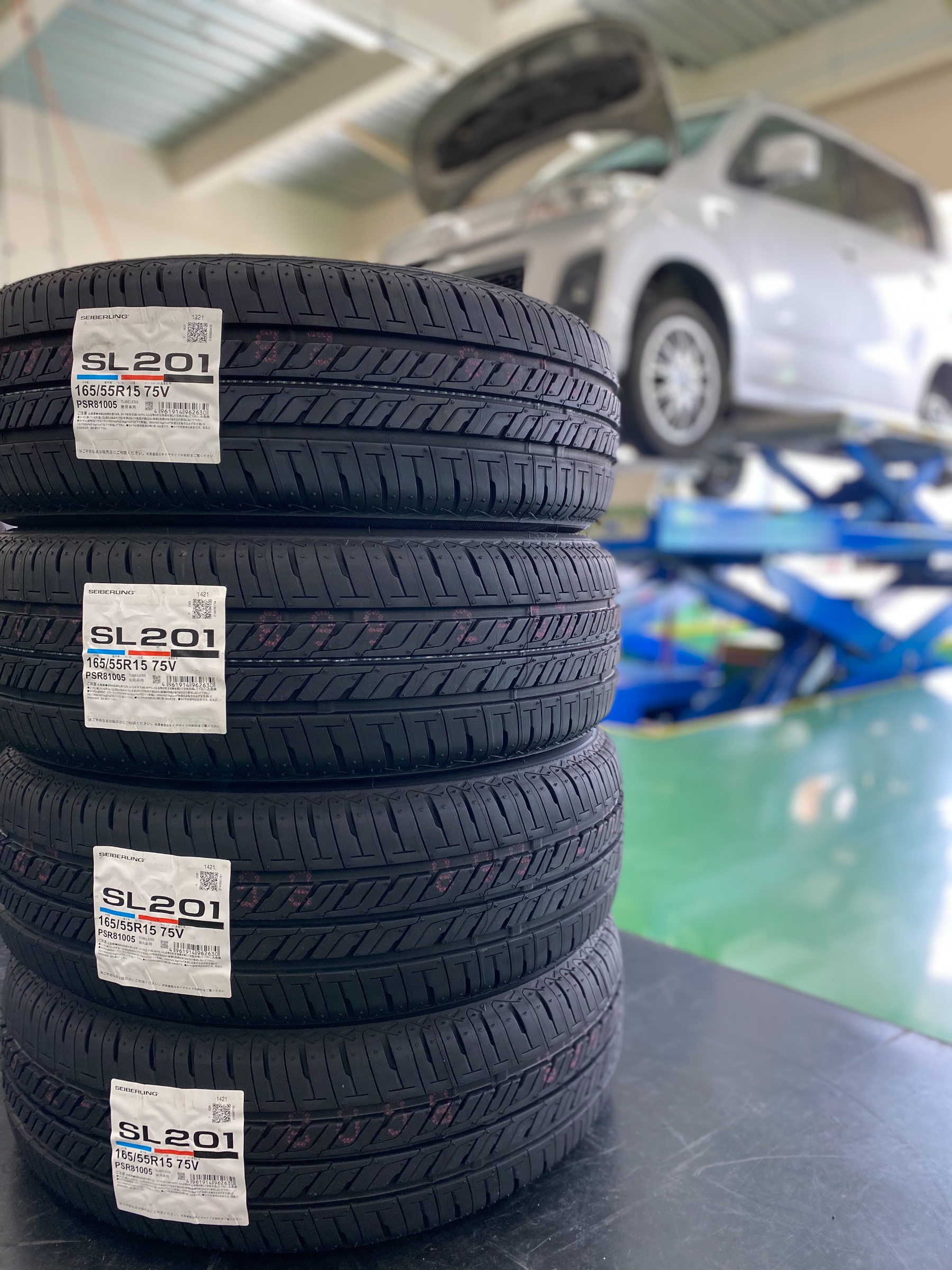 ブリヂストン工場製セイバーリング サイズは165/55R15です。