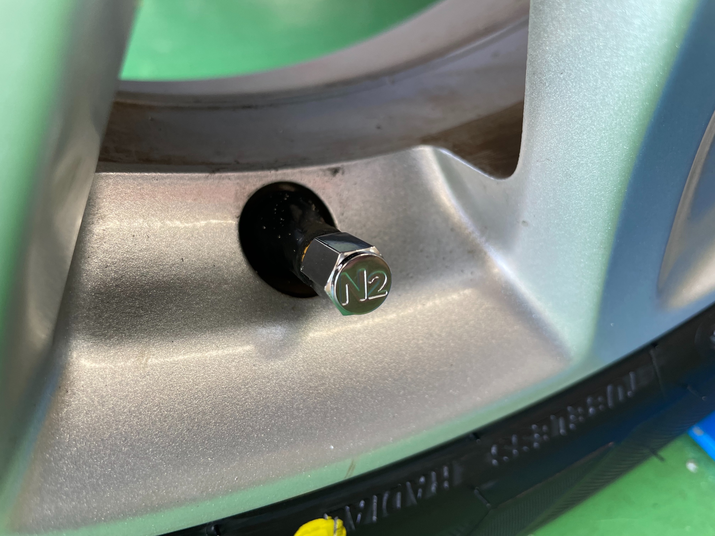 窒素ガスは通常の空気と比べて、タイヤ内圧の自然低下が少ないので、タイヤ内部の圧力をより長く安定した状態に保つ働きがあります。タイヤ館では窒素ガスの充填をお勧めしています。