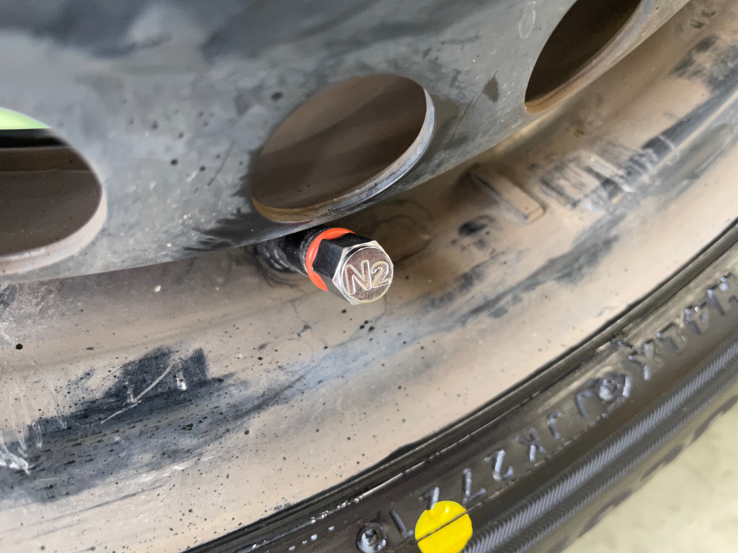 以前まで使用していたバルブを処分し、新しい専用のTPMS専用バルブの取付をします。