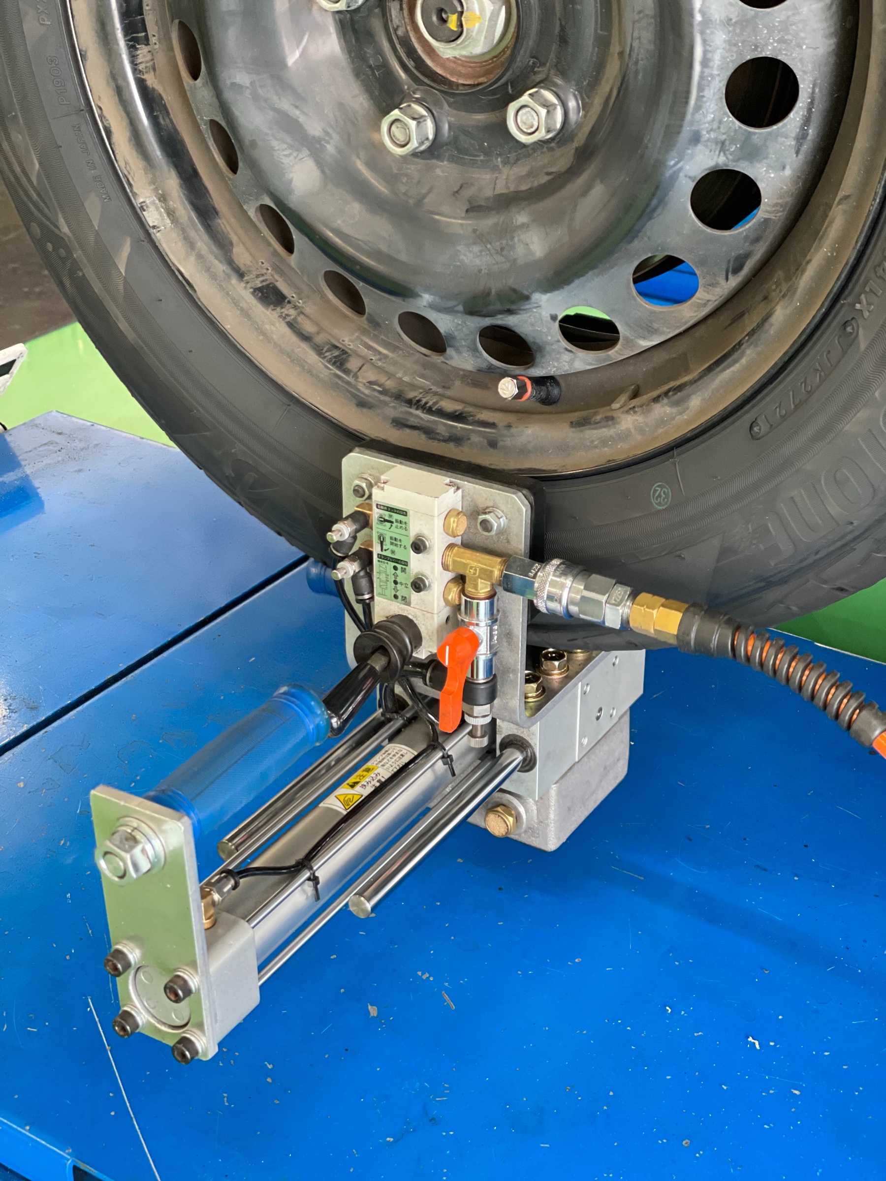 まず、タイヤをホイールから外して、TPMSセンサー送信機の取付を行います。