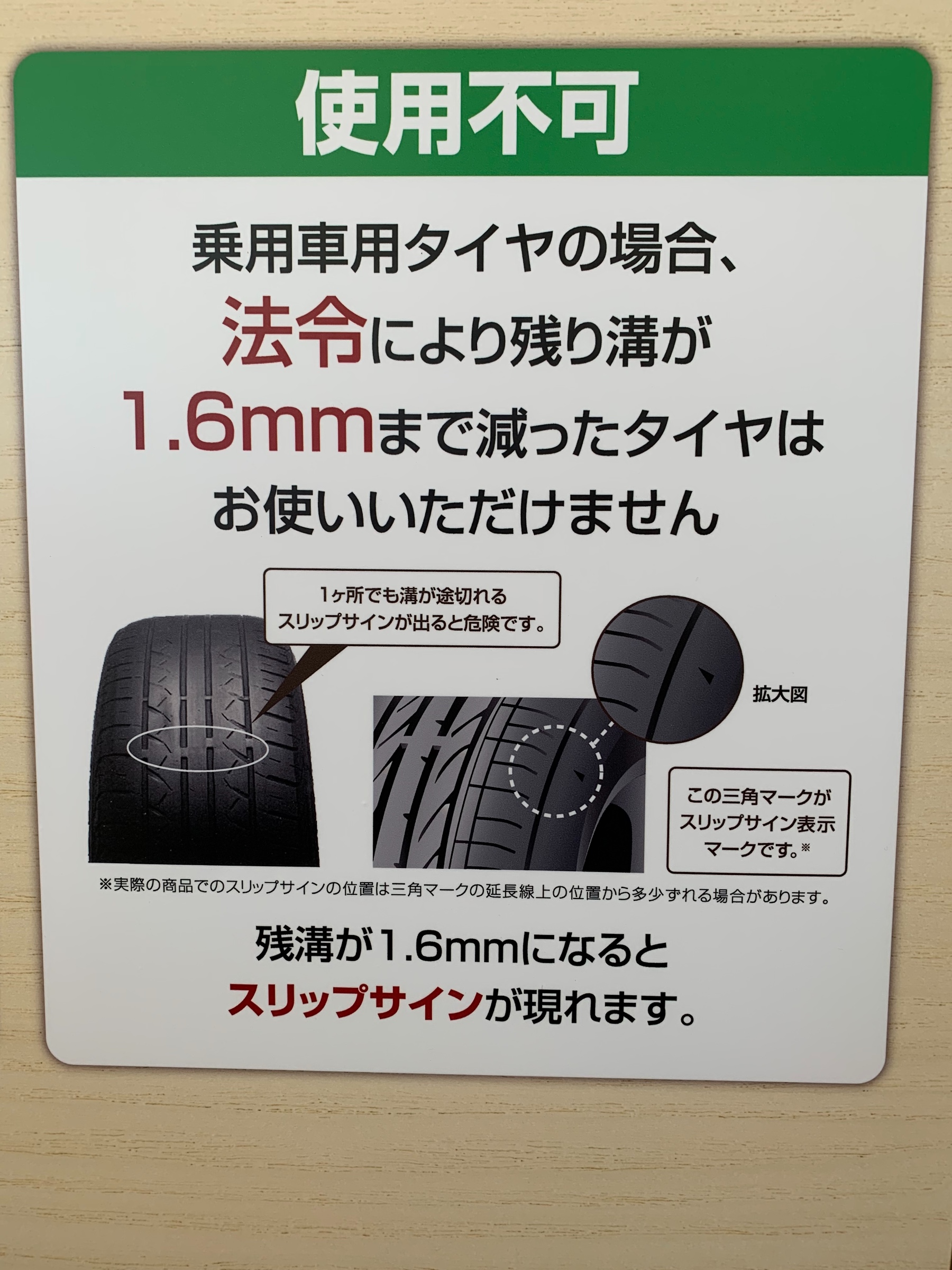 残溝が1.6ミリ以下のタイヤで走行するのは法律違反になってしまうんです(T . T)