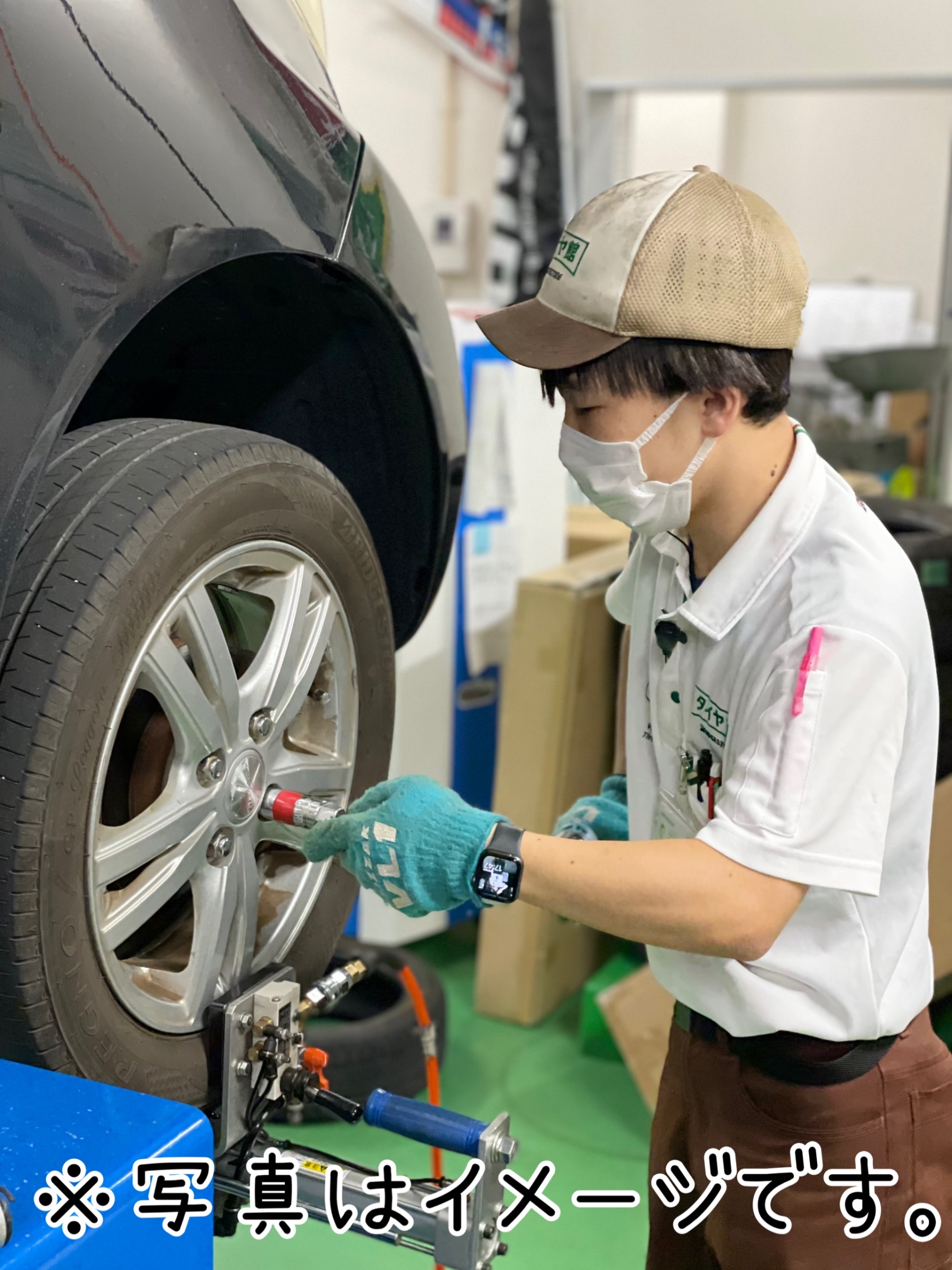 タイヤ取付時には、タイヤ館こだわりのセンターフィットサービスにて取付。
