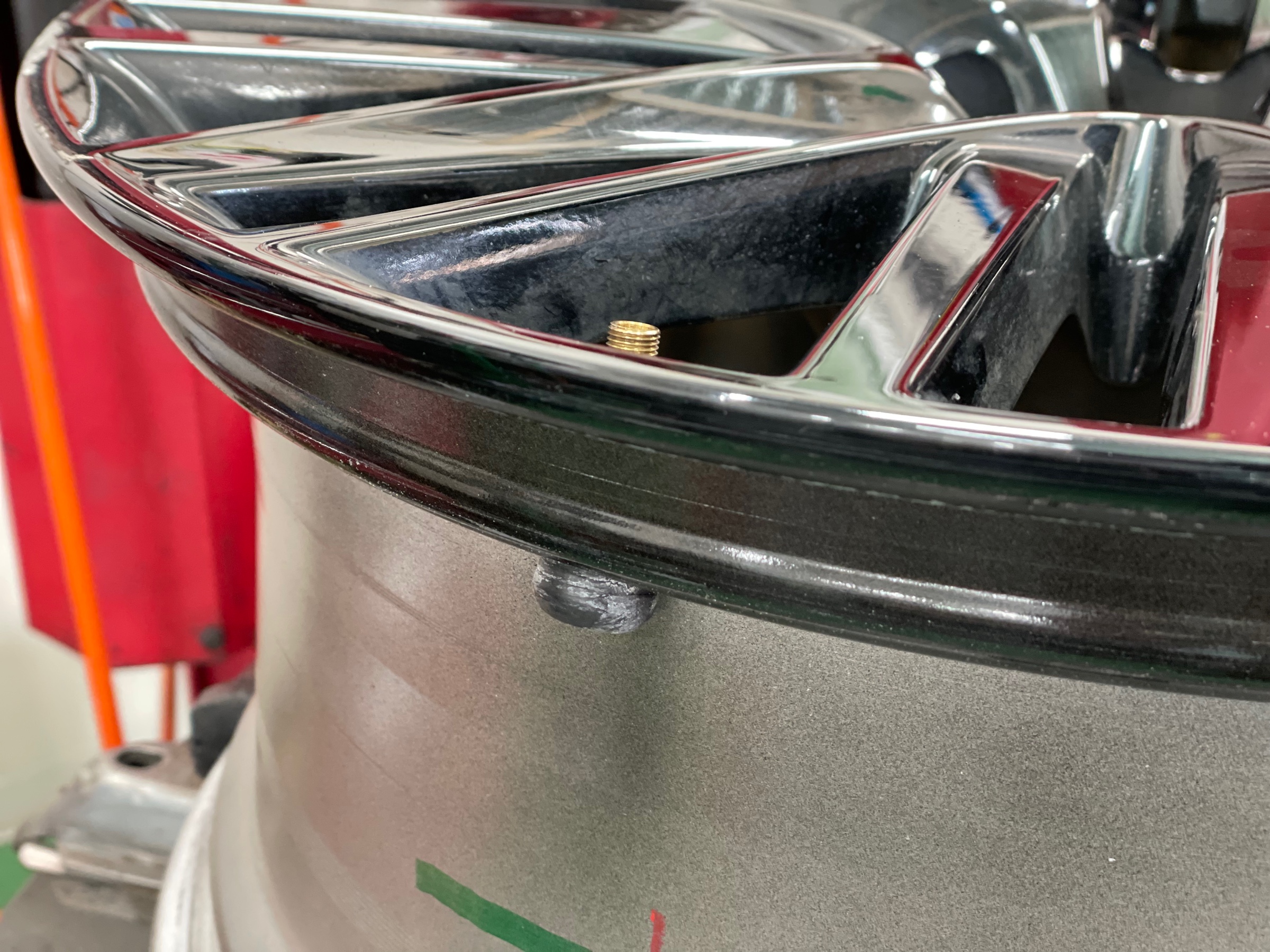 以前まで使用していたチューブレスバルブ処分し、新しくTPMSセンサー送信機バルブの取付をします。
