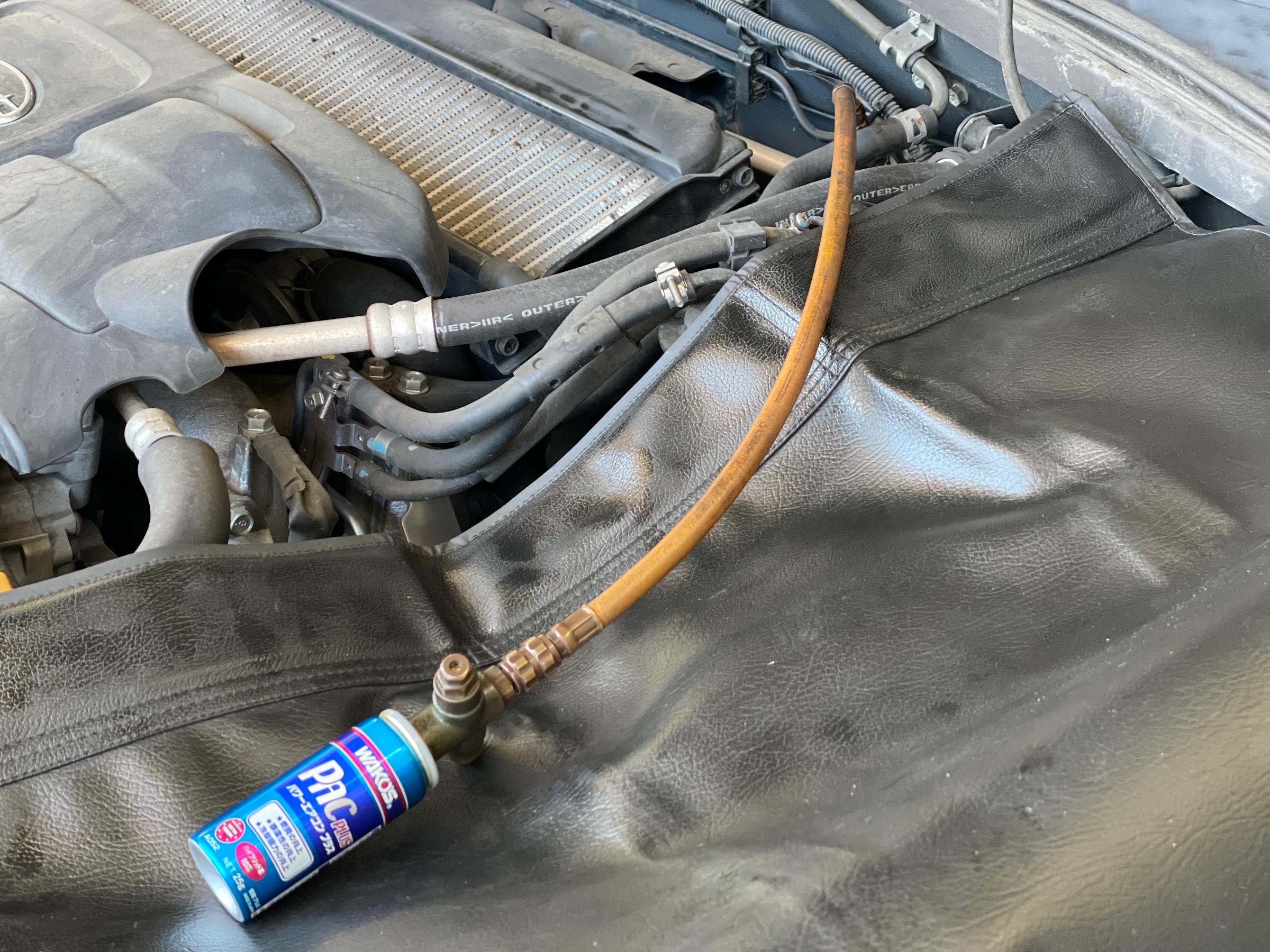 エアコンの冷えが最近悪いとお悩みになられていた為、エアコンの冷却効率向上とコンプレッサーの保護の為に施工させていただきました!
