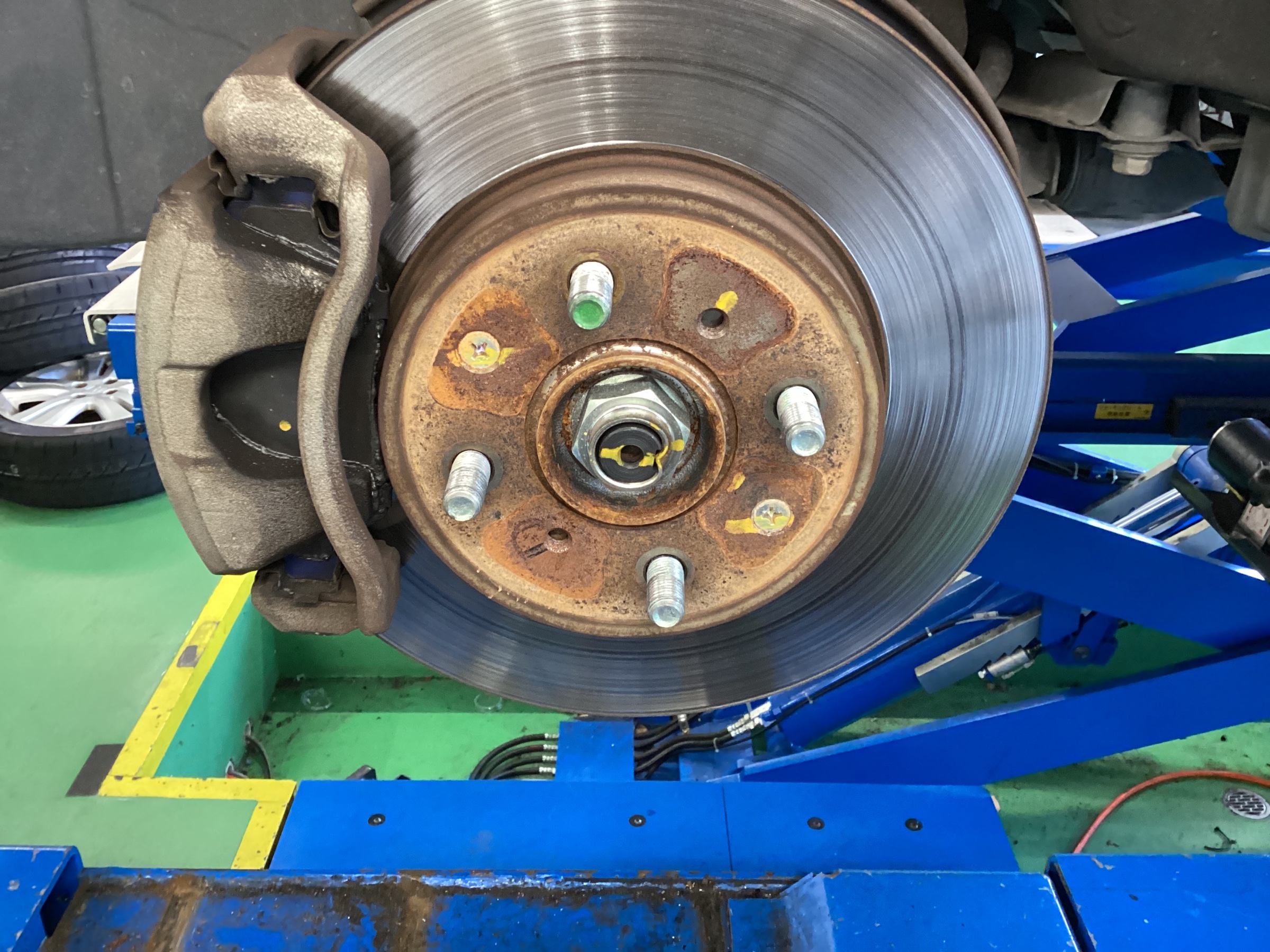 タイヤを外さないと見えない部分なのでサビてしまっているお車、結構多いです。。