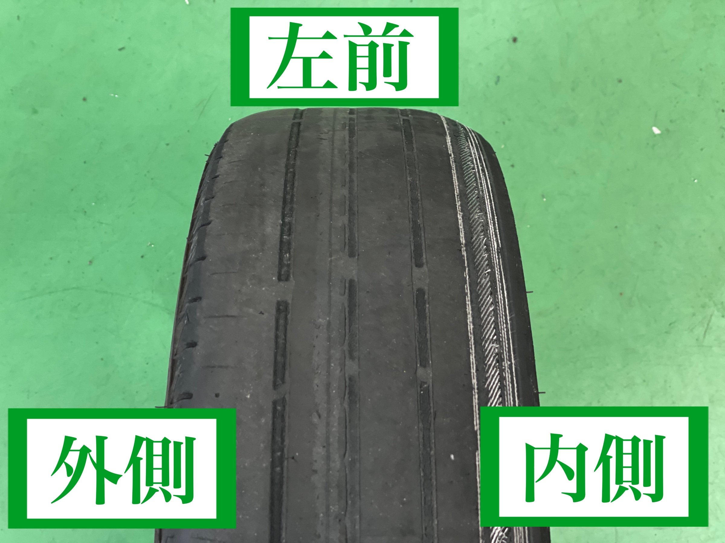 偏摩耗によりタイヤの内側がワイヤー見えてますので、アライメント調整をしました。