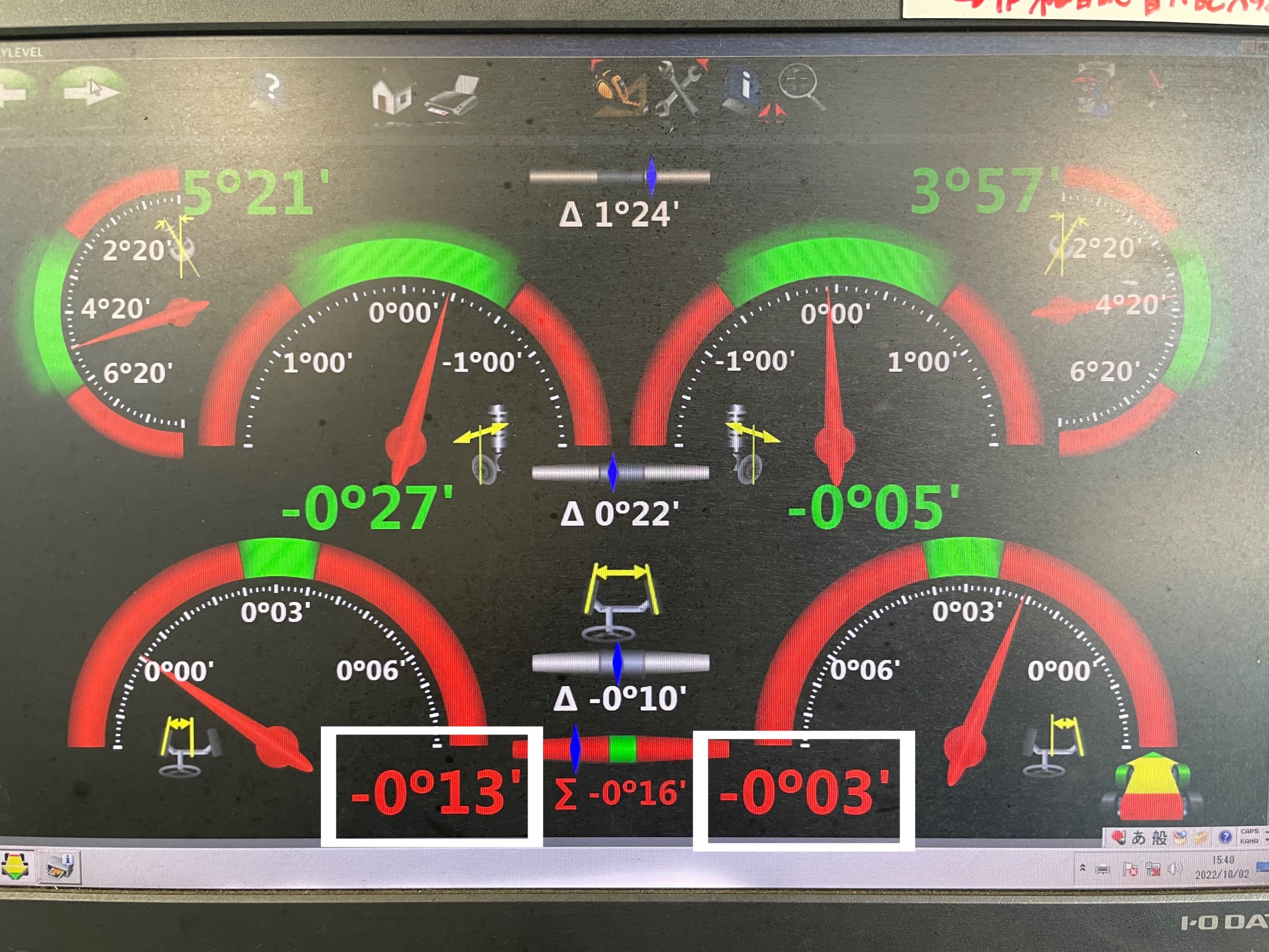 メーカー基準値以内には入っていますが、ややズレてますね。