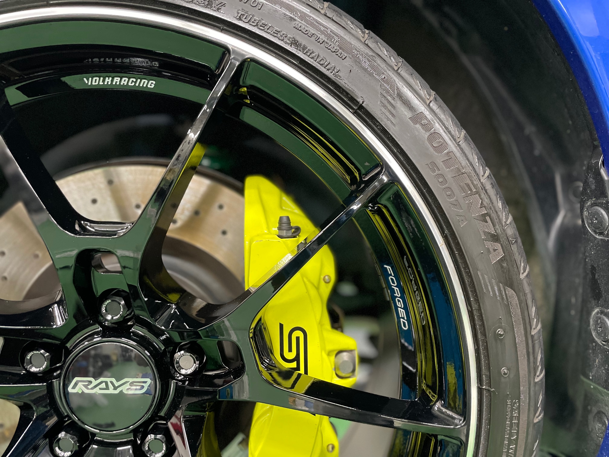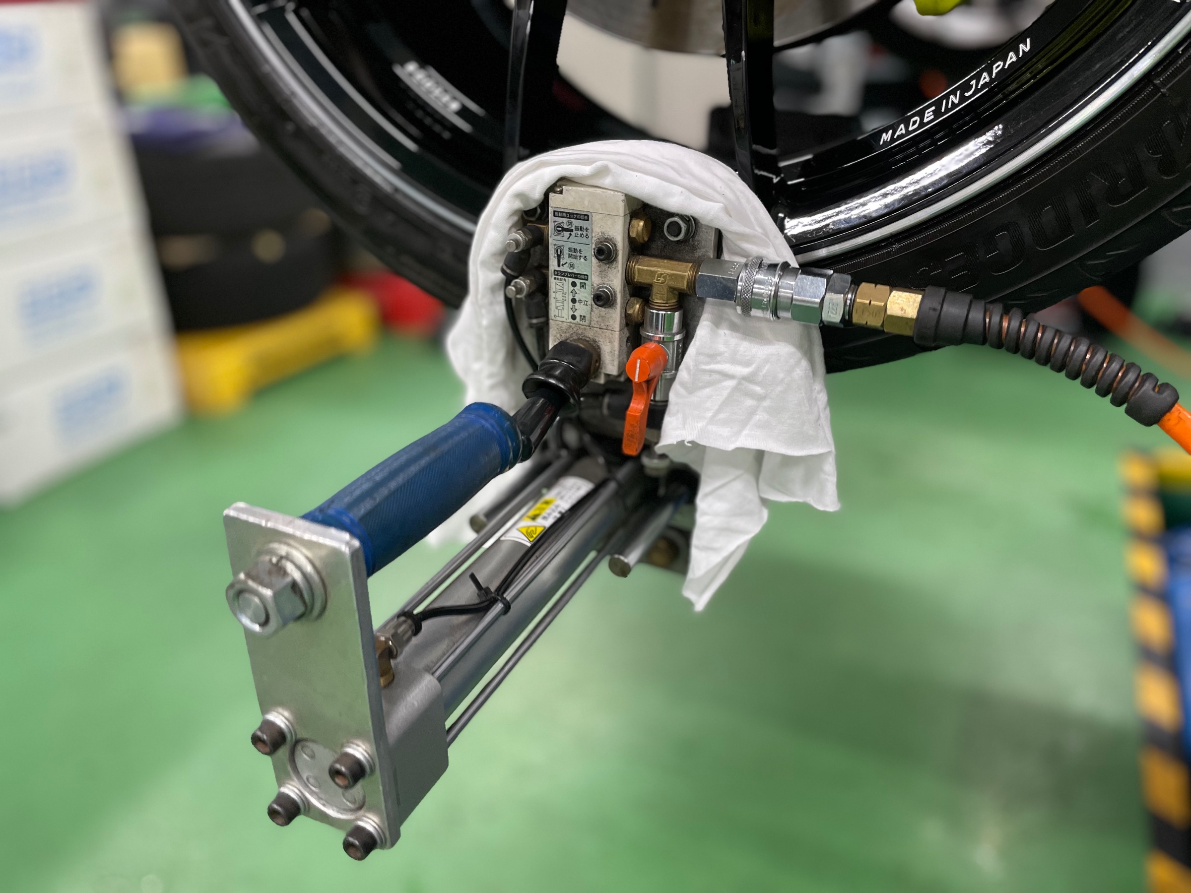 タイヤ・ホイール取付完了し、仕上げはブリヂストンのタイヤWAX!