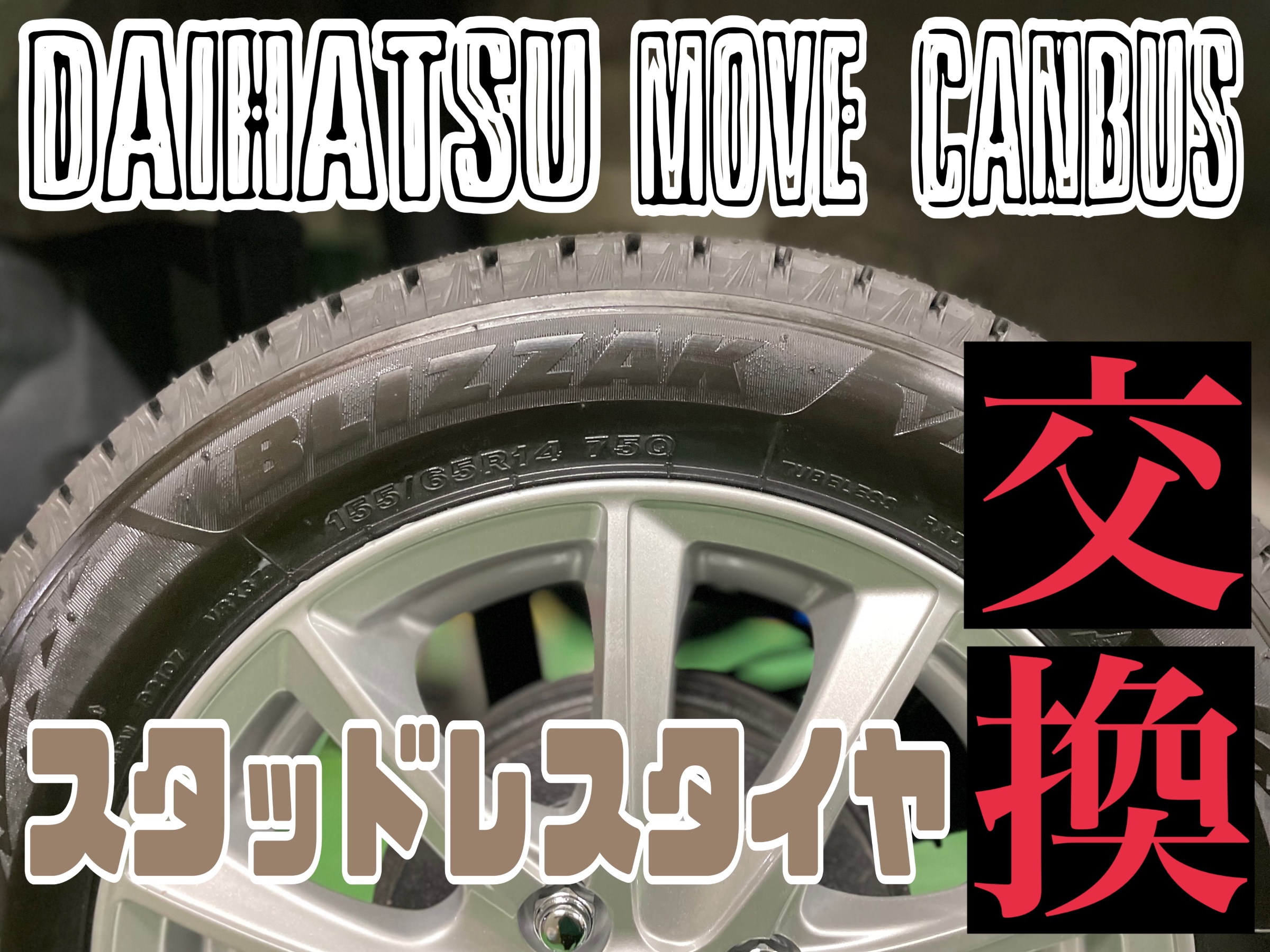 本日のご紹介は、ダイハツ ムーヴキャンバス LA850S スタッドレスタイヤ交換レポートです。
