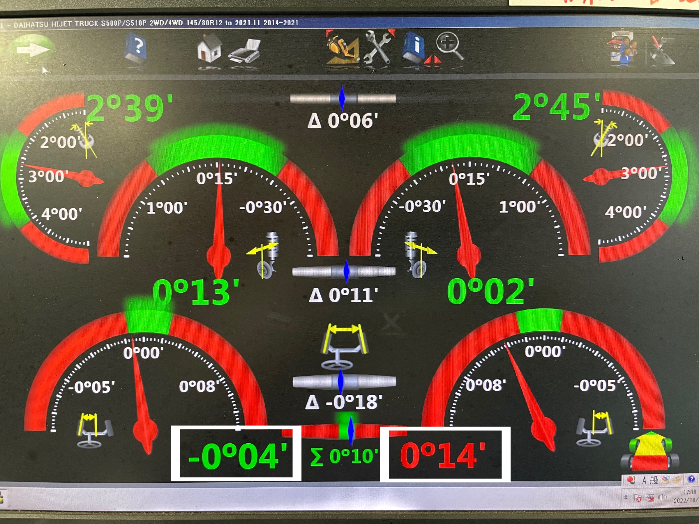 本日のご紹介は、ダイハツ ハイゼットジャンボ S500P アライメント調整レポートです。
