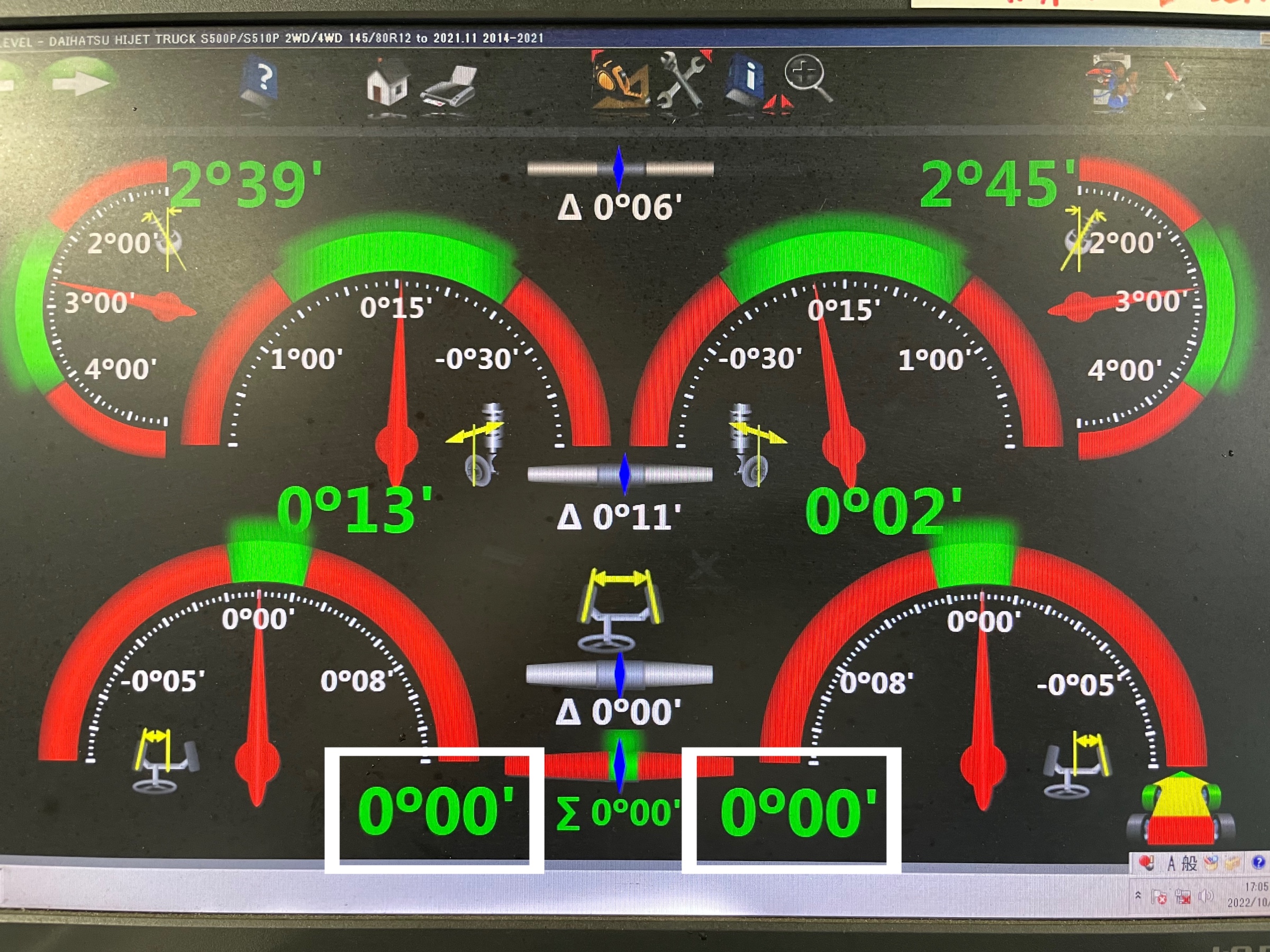 ダイハツ ハイゼットジャンボ S500P アライメント調整