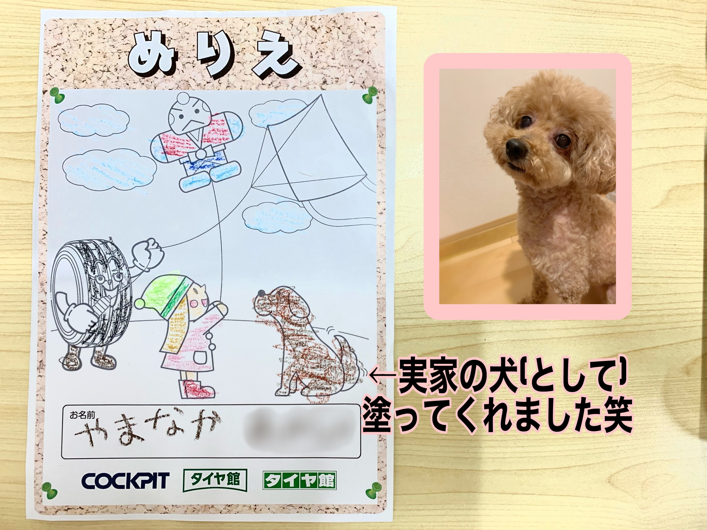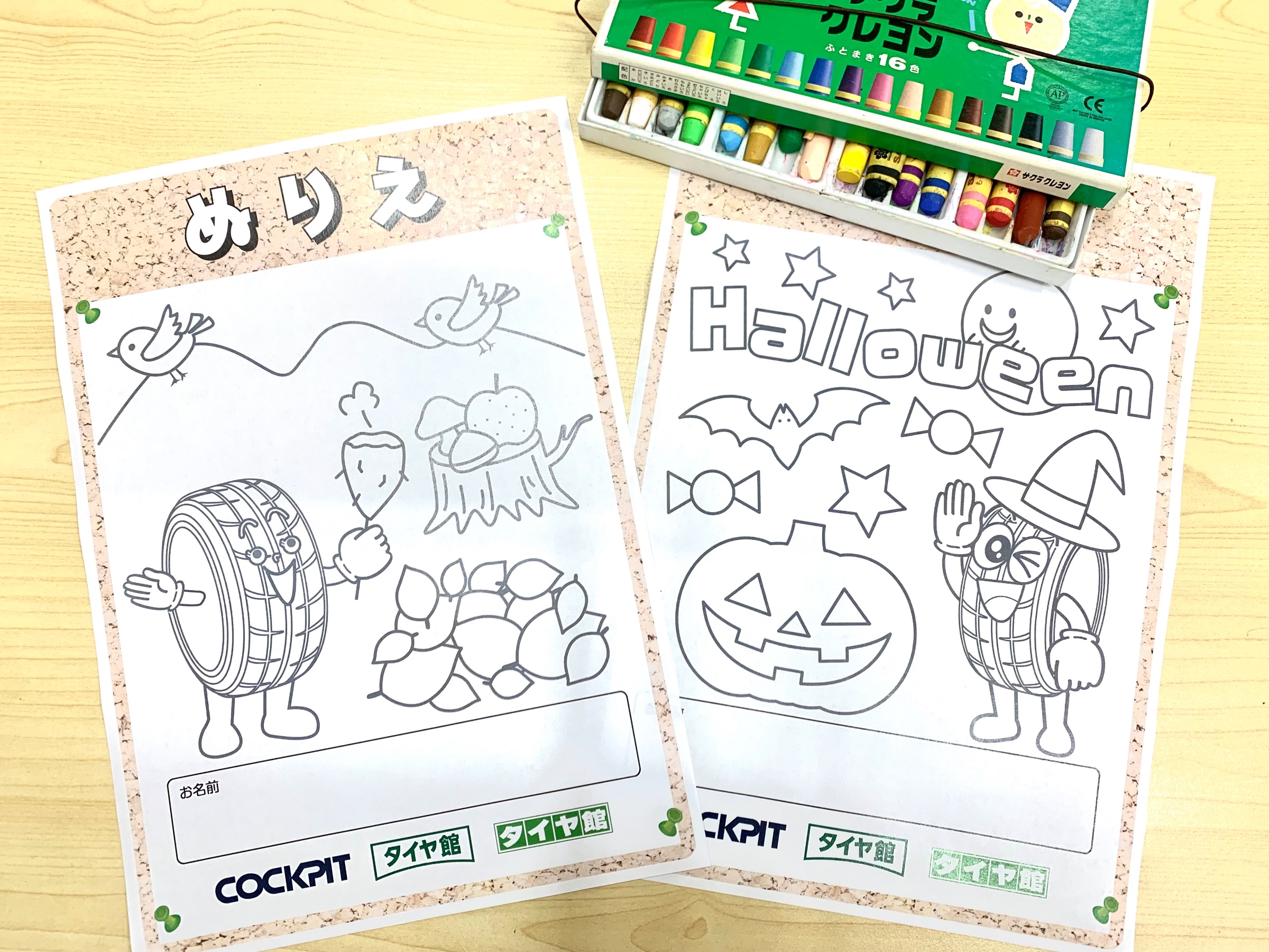 タイヤ館オリジナルの塗り絵になっており、塗っていただいた絵は店内にて可愛く飾らせて頂きます(^^)