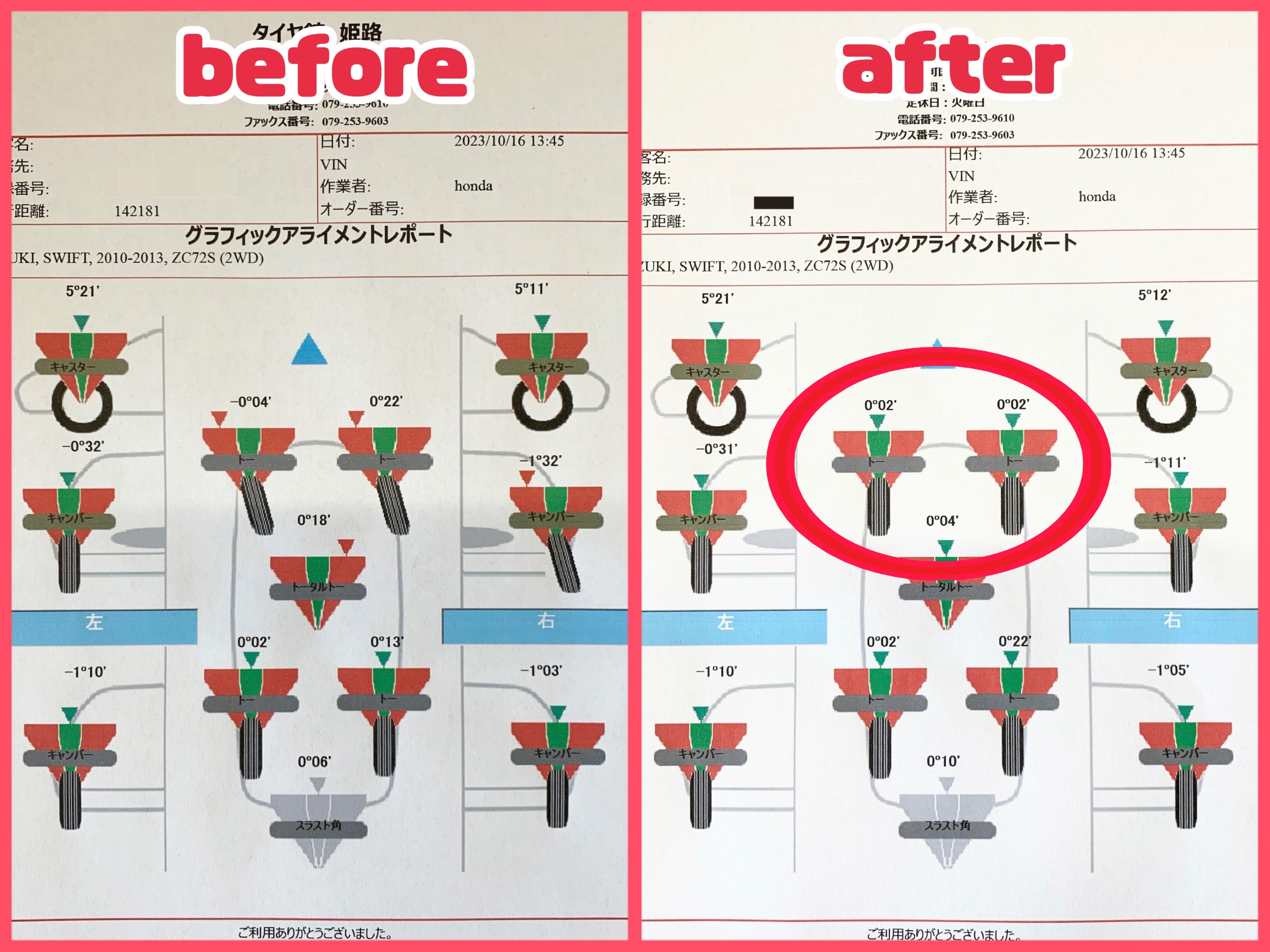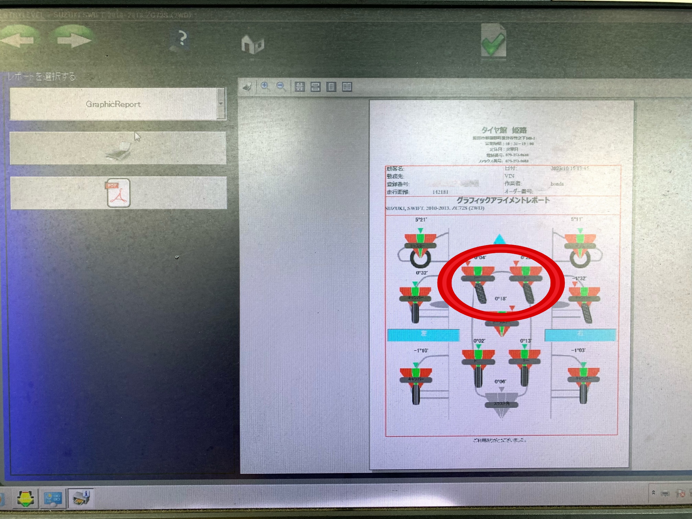歪んでいた両前輪が規定値(緑の枠内)になりましたね!