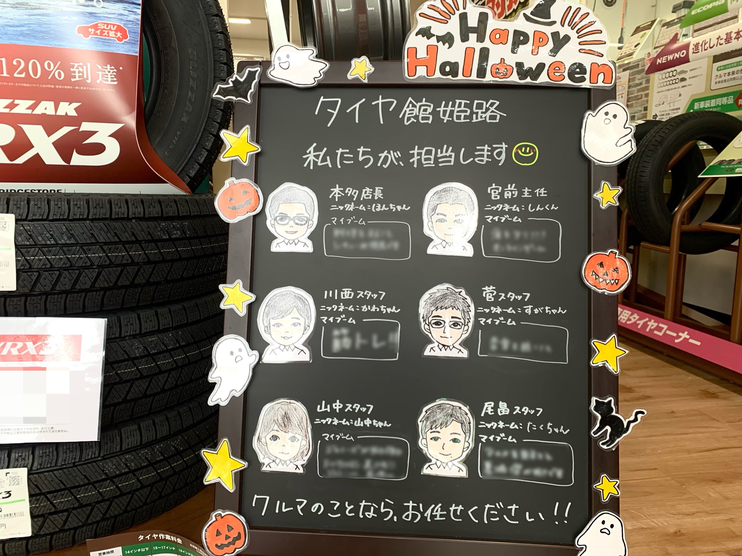 ハロウィンシーズンということで、おばけやカボチャなども描いて貼ってみました!