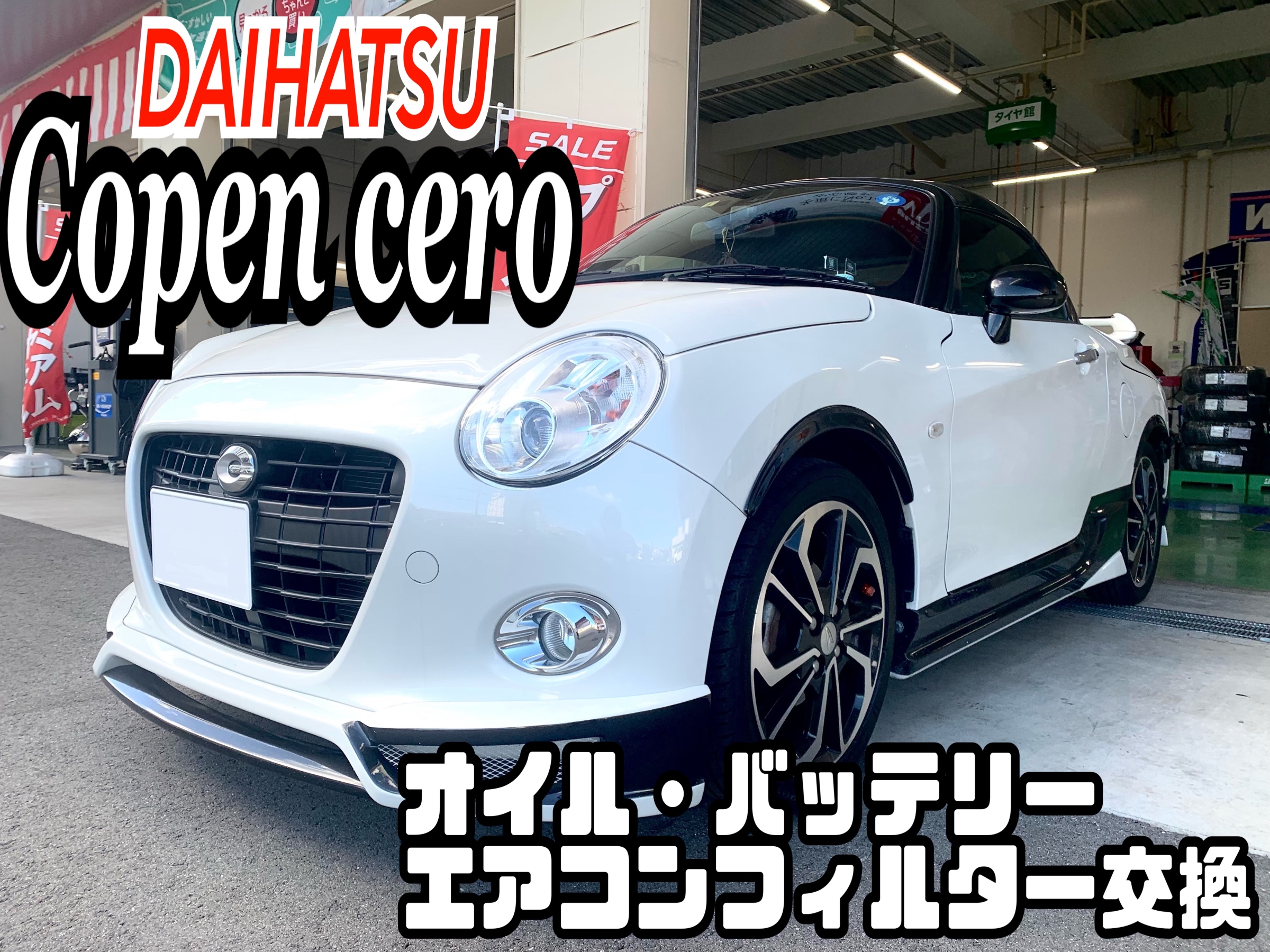 今回は、ダイハツ コペンセロの、オイル・バッテリー・エアコンフィルター交換をご紹介いたします!