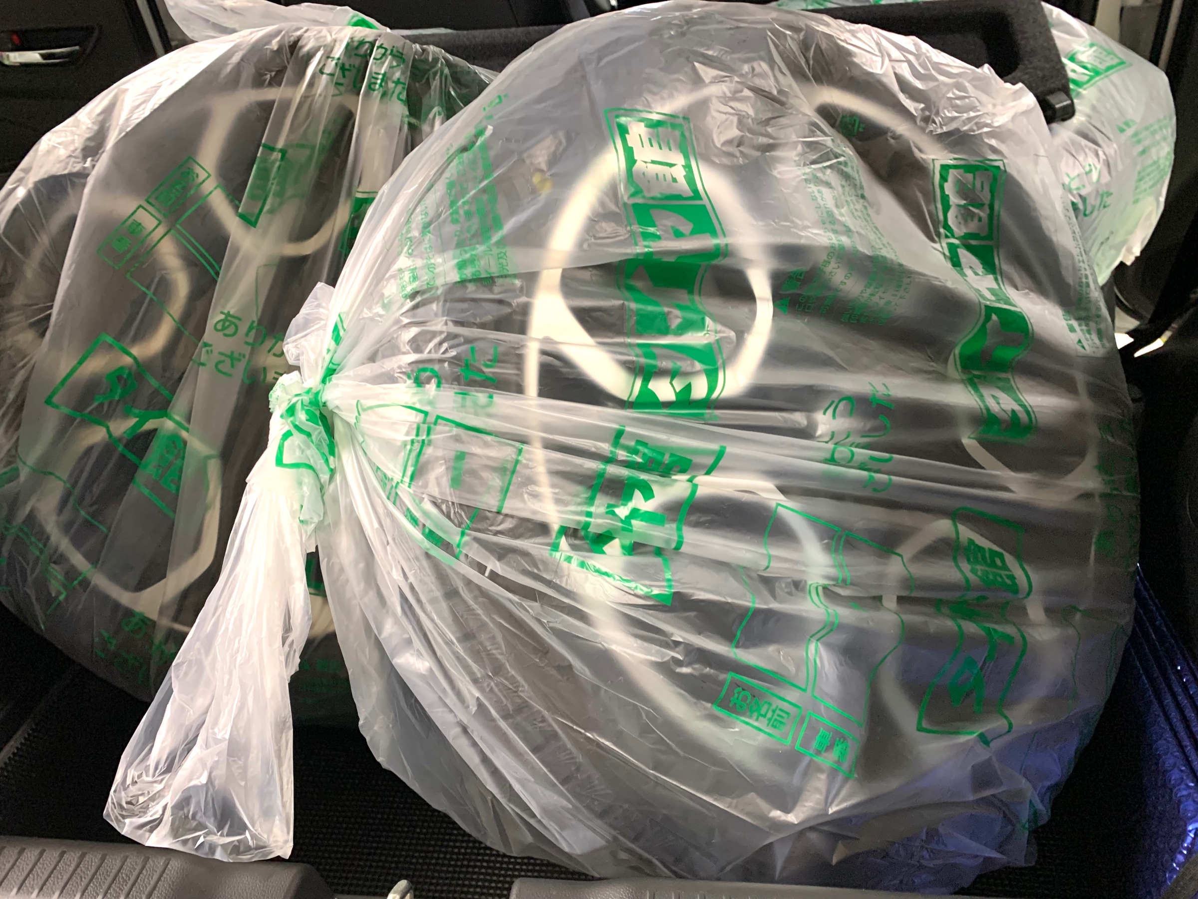 純正ホイールとスタッドレスタイヤは、袋に入れてお持ち帰り