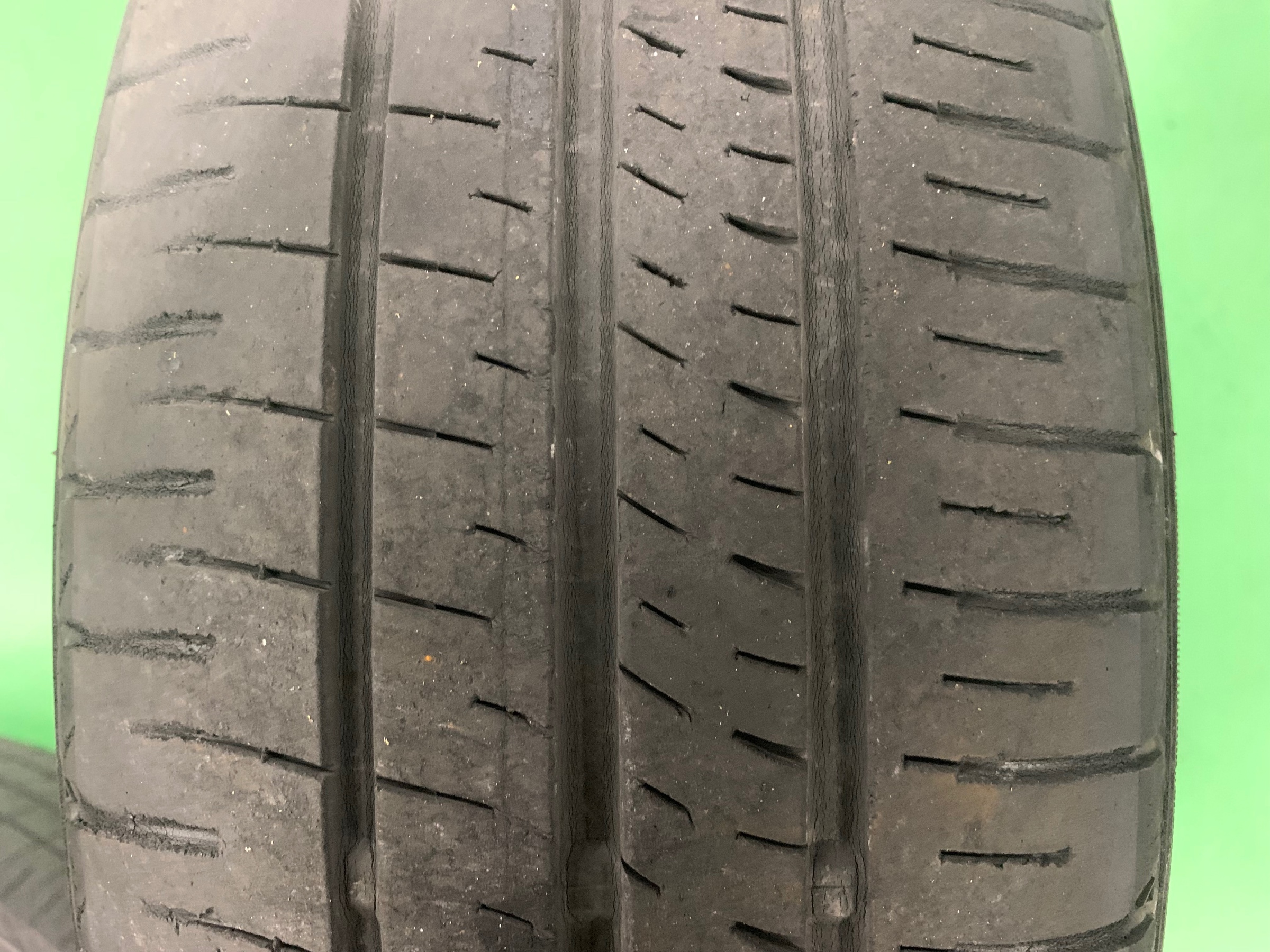 両サイドの減りと、接地面の溝の亀裂が目立ちますね