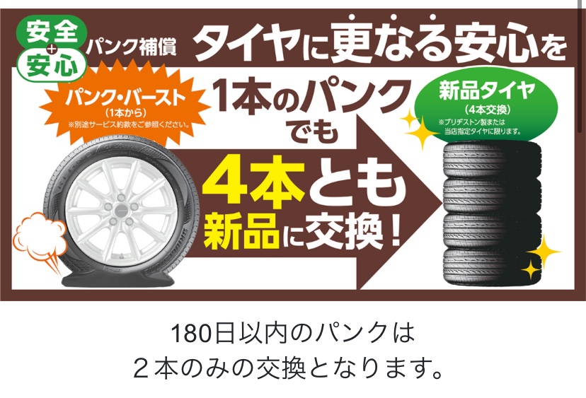 【ご案内】新品タイヤと同時に加入!タイヤ館のパンク補償