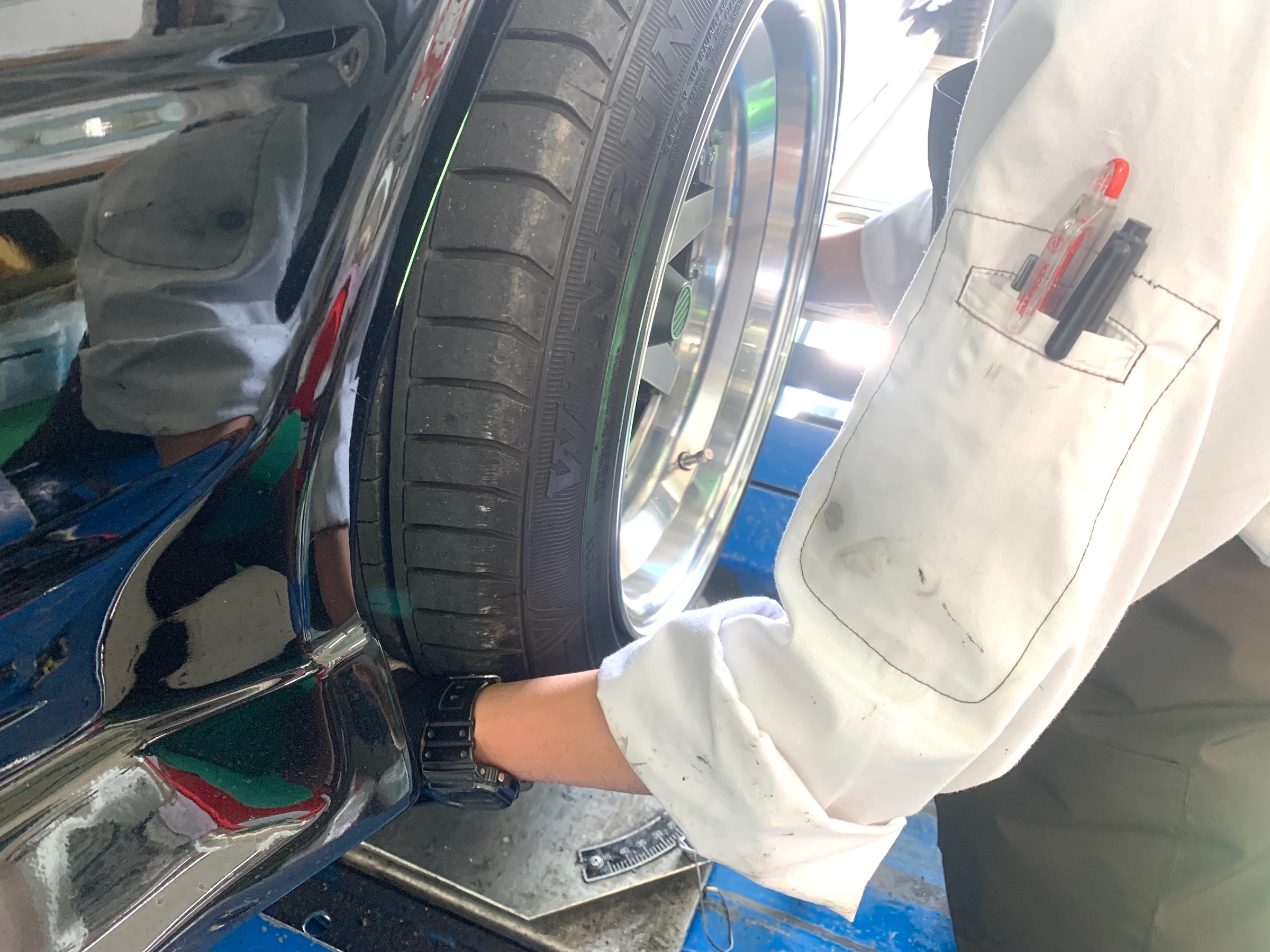 こちらのお客様の担当は本多店長なので、わたしも当日までどんなホイールでタイヤは何か、把握しておらず、登場したNewホイール達を見てびっくりしました。