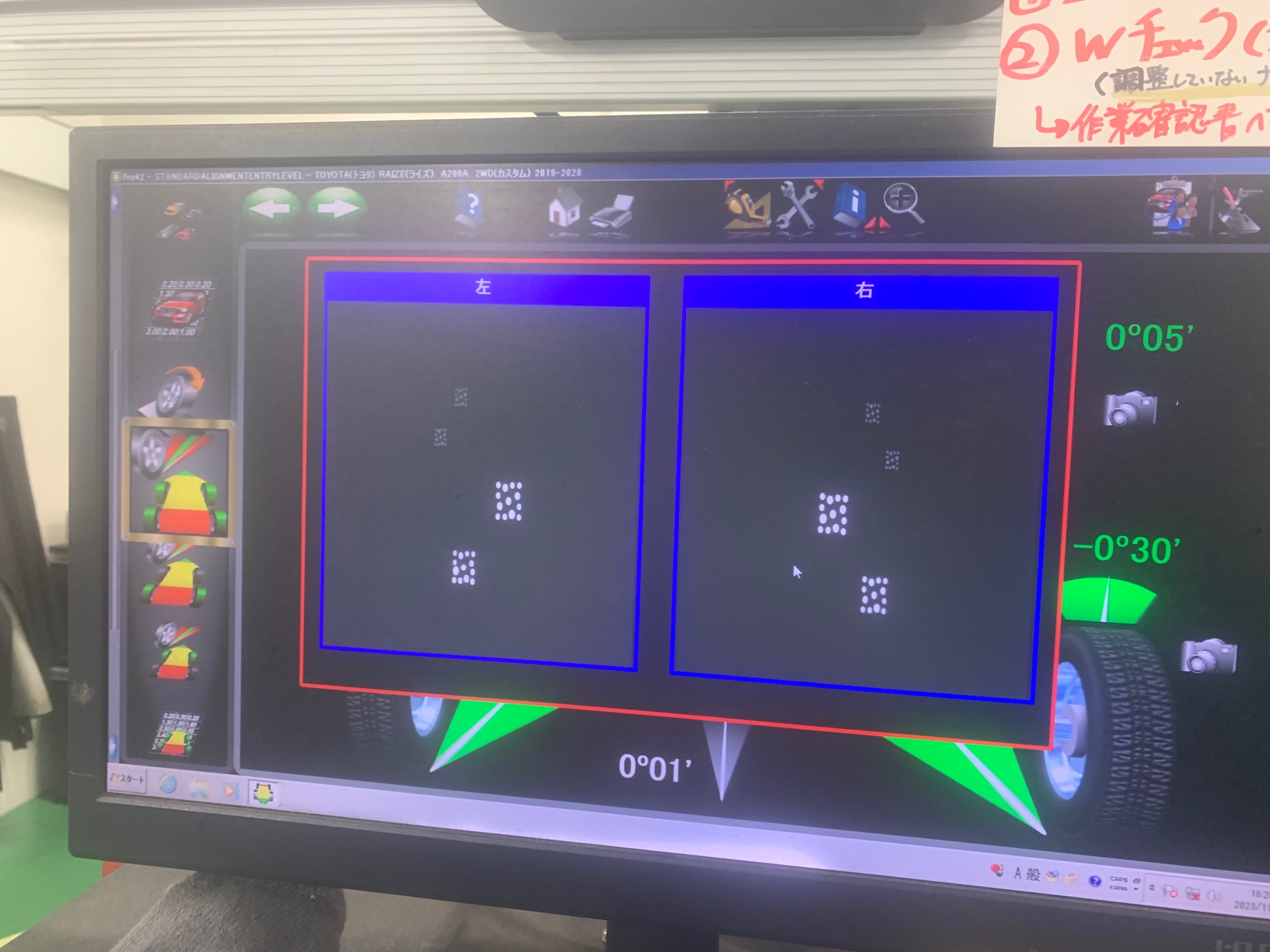 モニターを見ながら、基準値になるよう調整していきます。