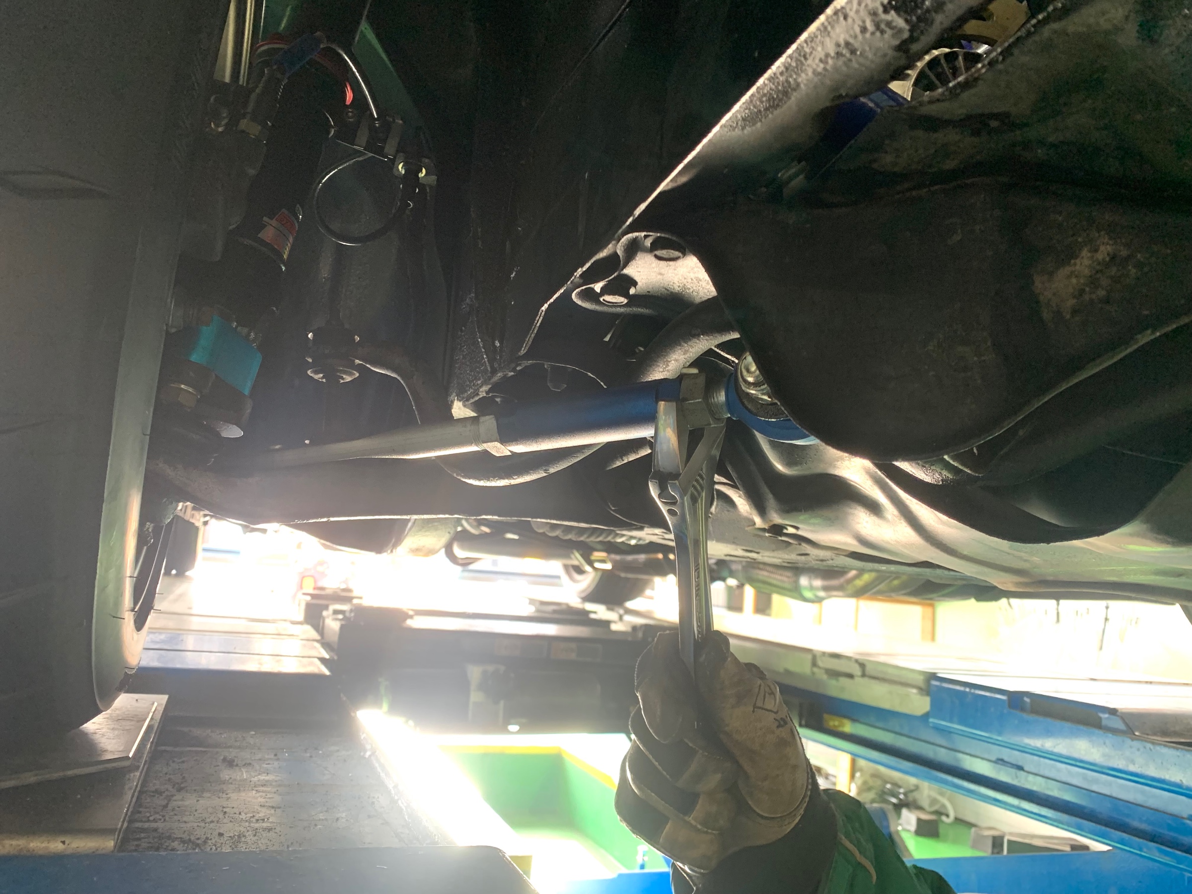 前輪の内股を、基準値の0へと調整