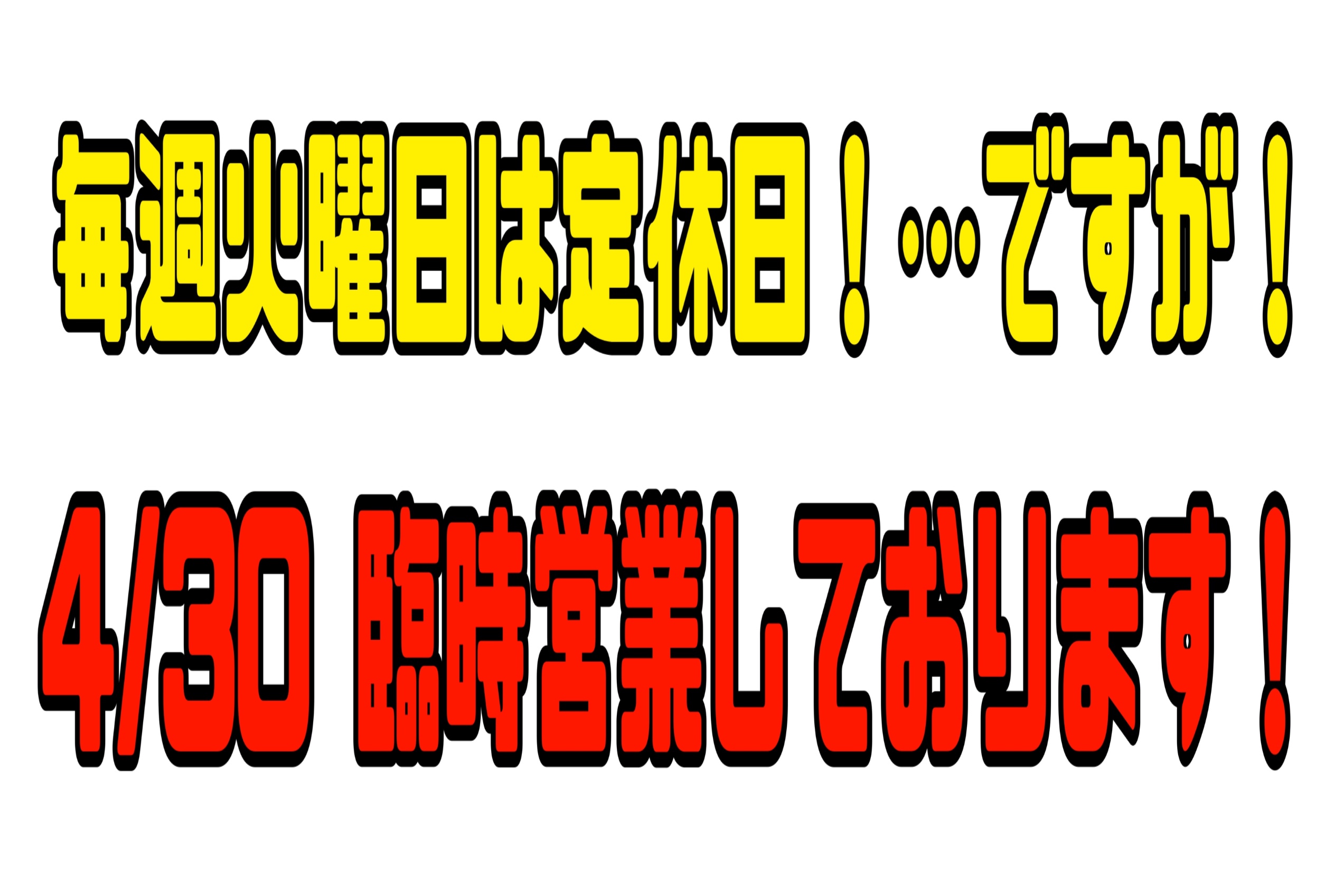 4/30 ☆臨時営業しております☆