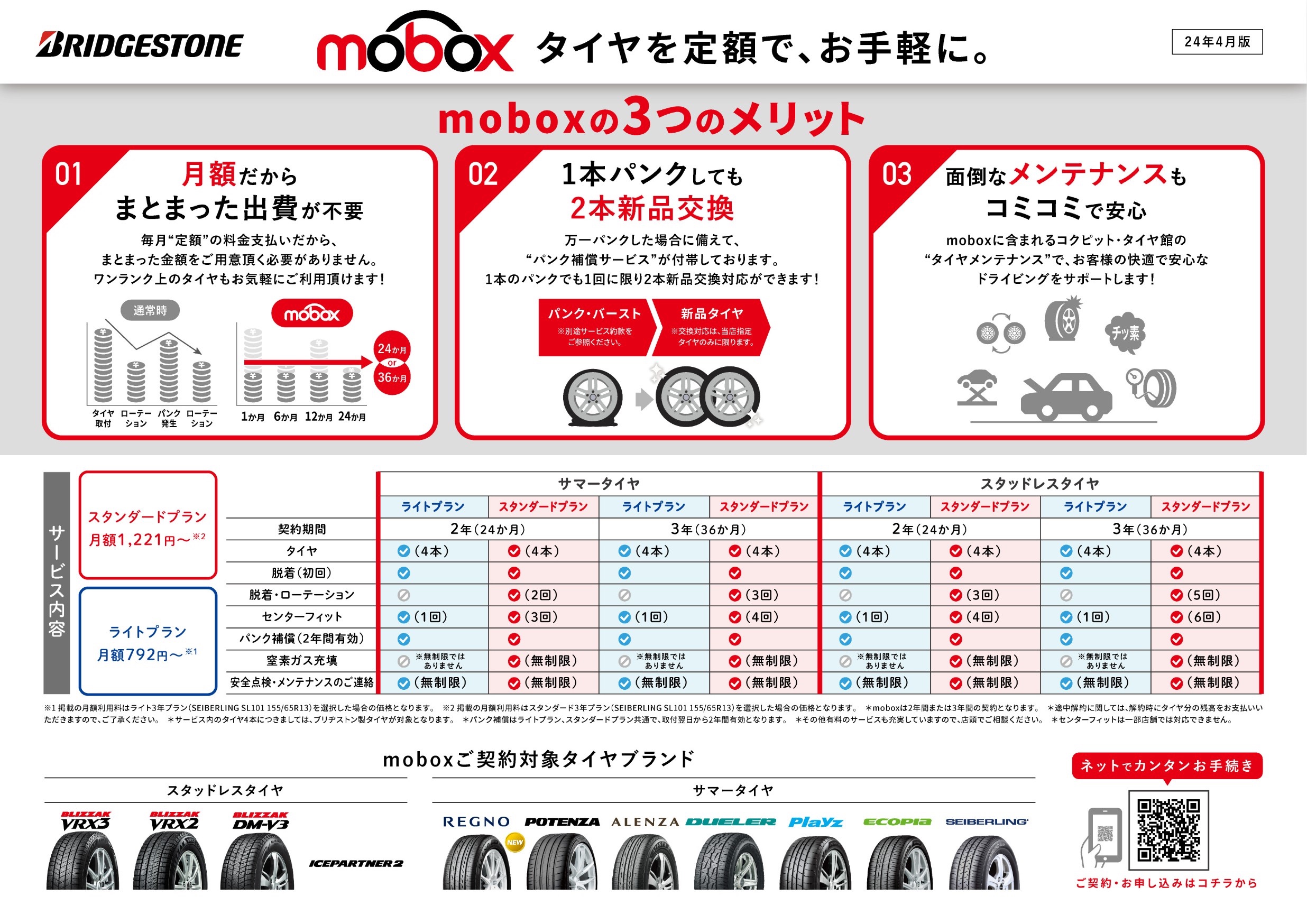 ブリヂストンのタイヤとメンテナンスの安心・定額サービスの『Mobox(モボックス)』