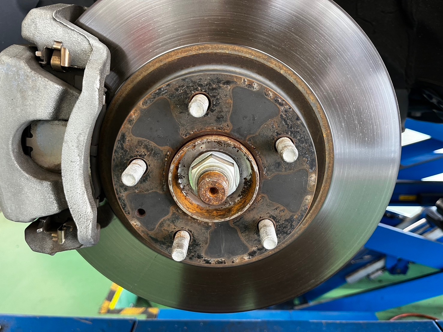 タイヤ交換と同時に、ホイールの接地面、ハブの防錆施工もご依頼いただきましたので同時に施工していきます!