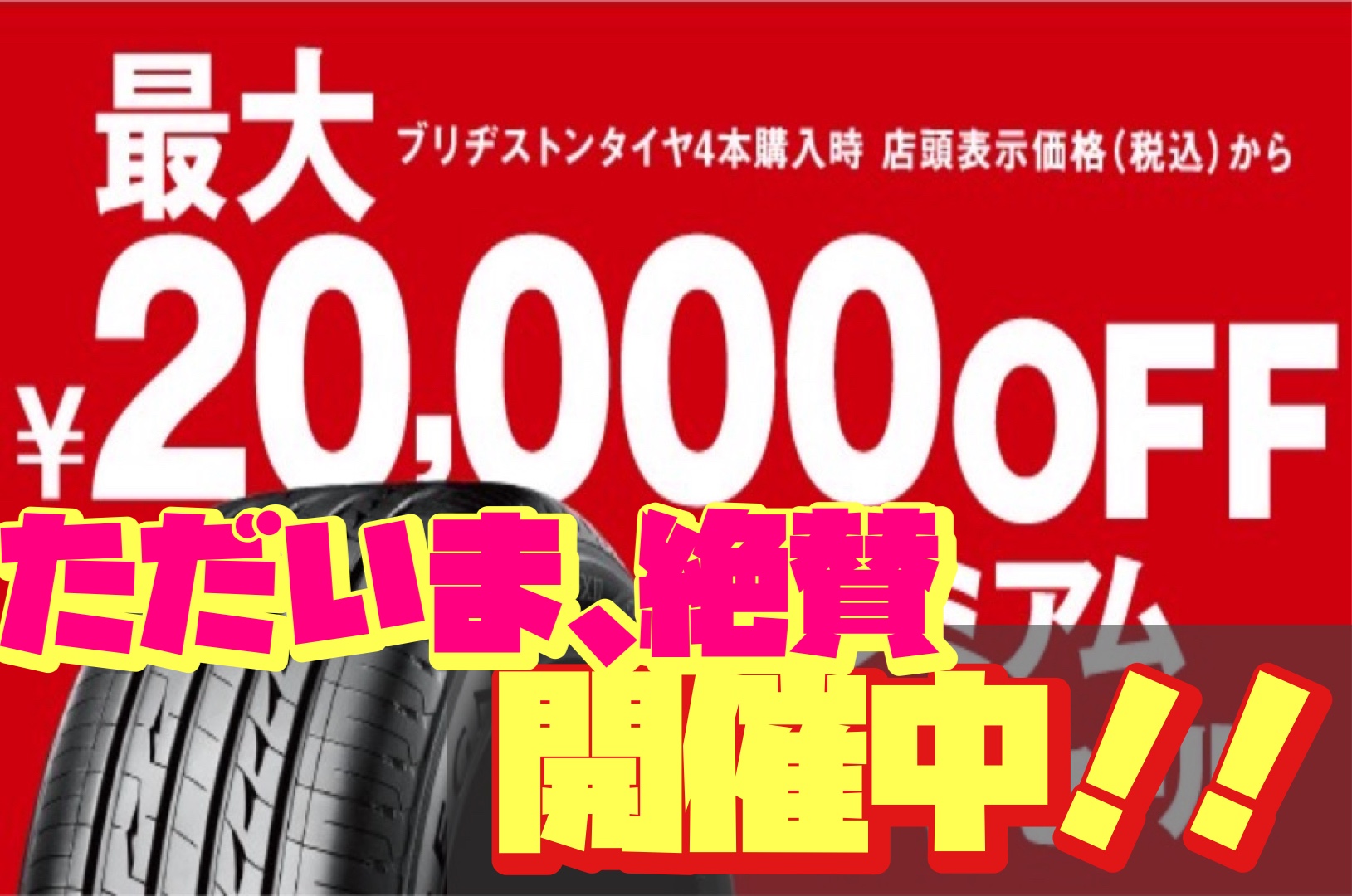 タイヤ館アプリにご登録いただいた全てのお客様がご利用いただける最大20000円オフクーポンを配布中!