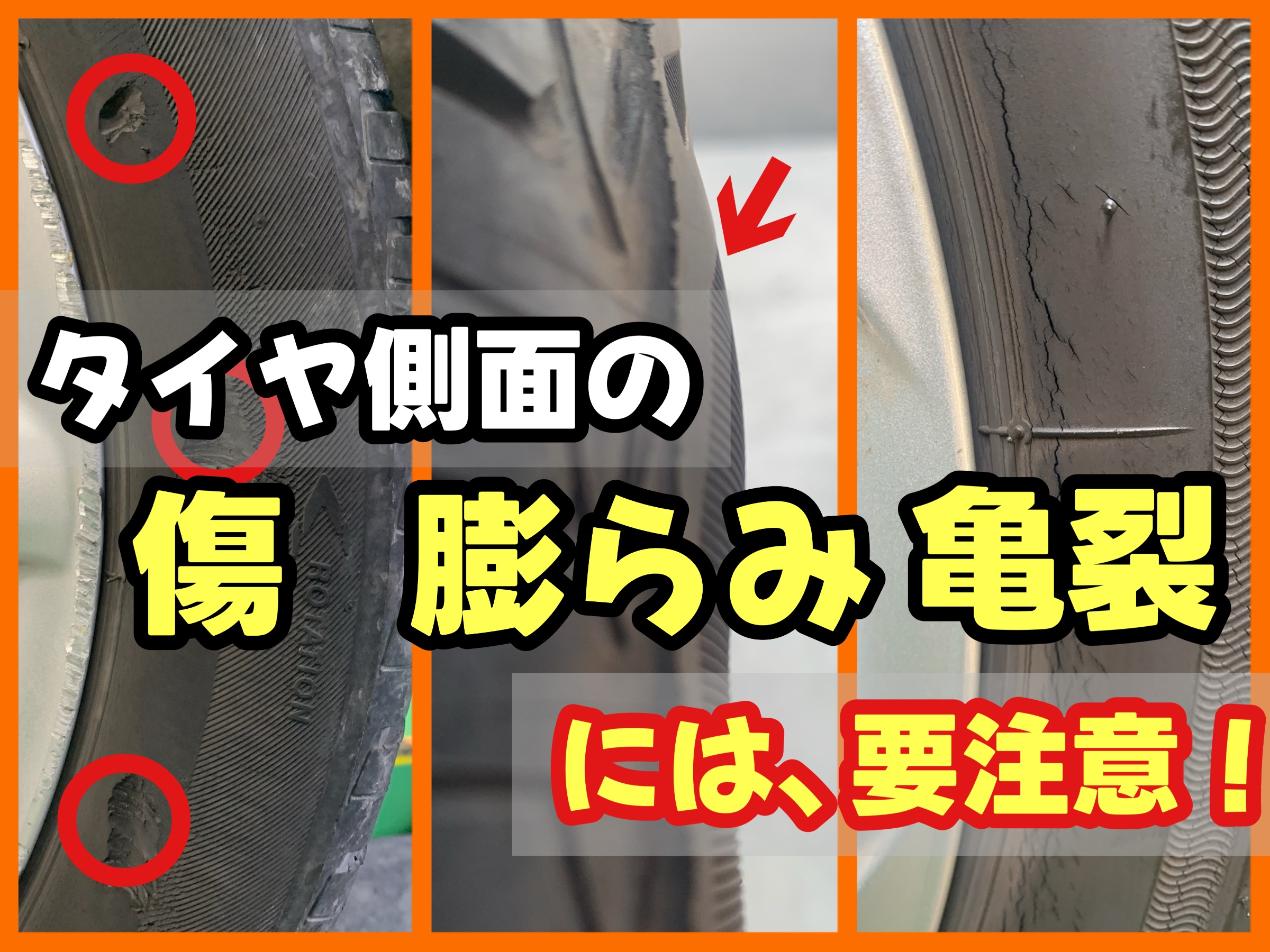 タイヤに傷、膨らみ、亀裂があったら要注意!