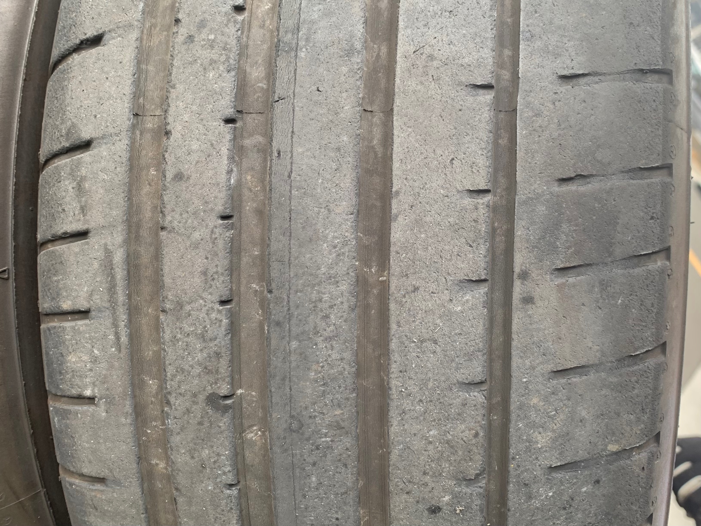 ↑外したタイヤはこちら。全体的に摩耗が進み、交換時期が近付いていました。