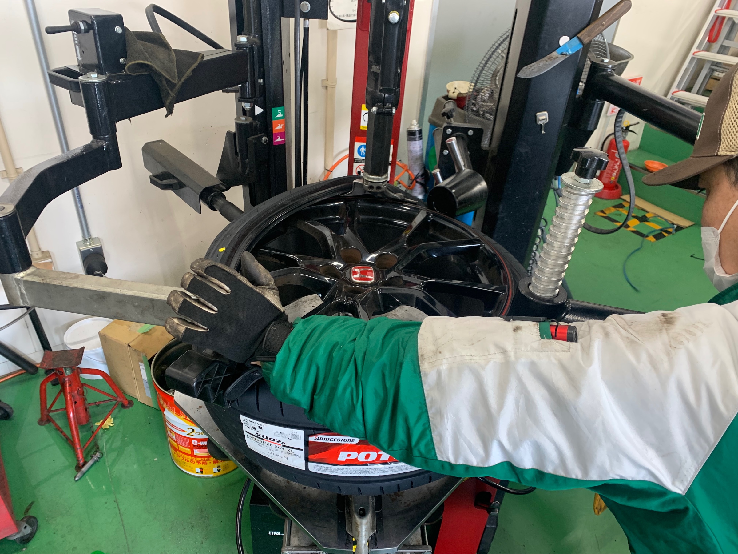 そして、前回のスカイライン同様チェンジャーの秘密兵器を使いこなし(恵方巻きみたいな)タイヤをホイールに組み込んでいきます