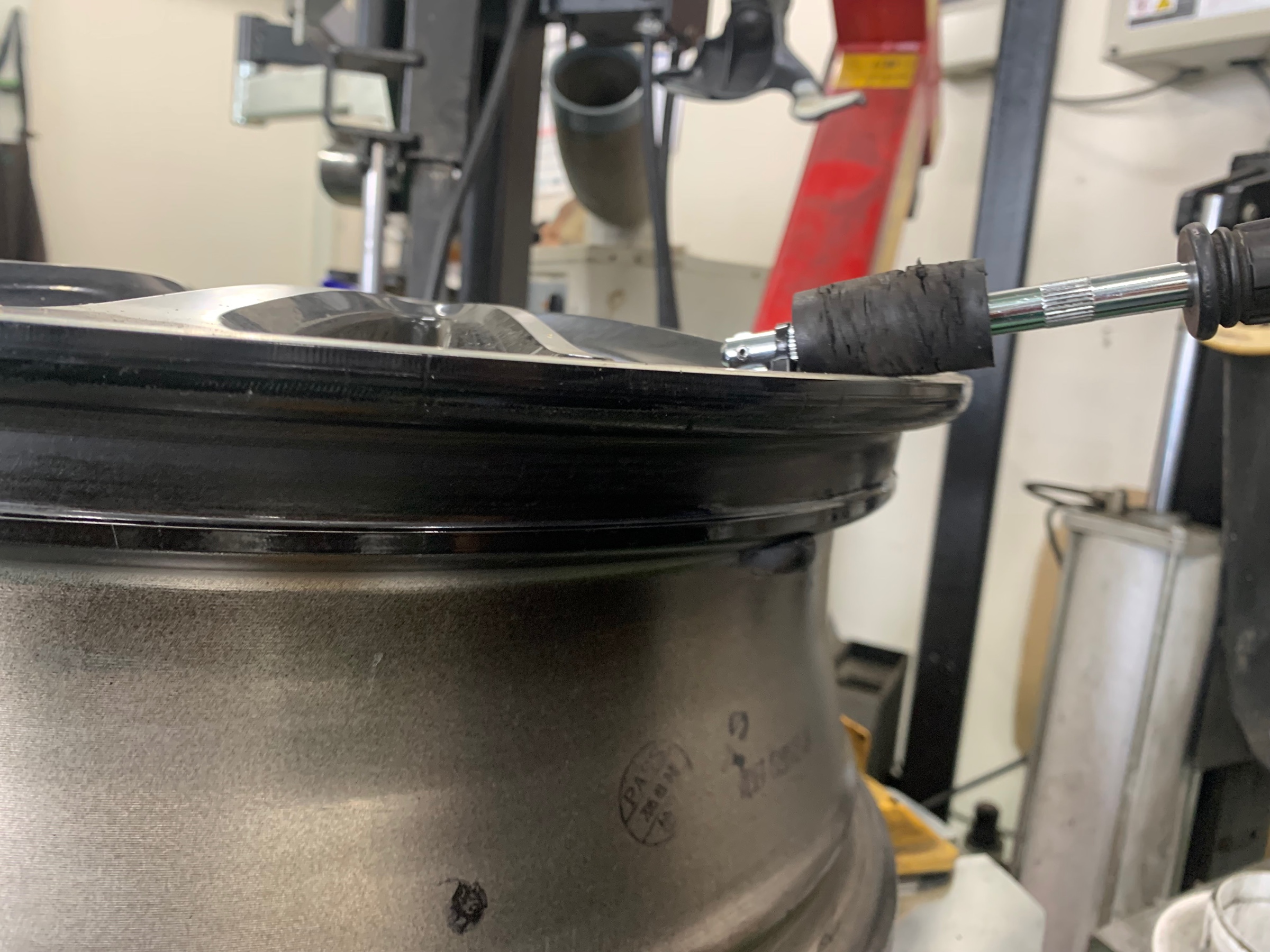↑ホイールの汚れを落とし、エアバルブの交換を行います