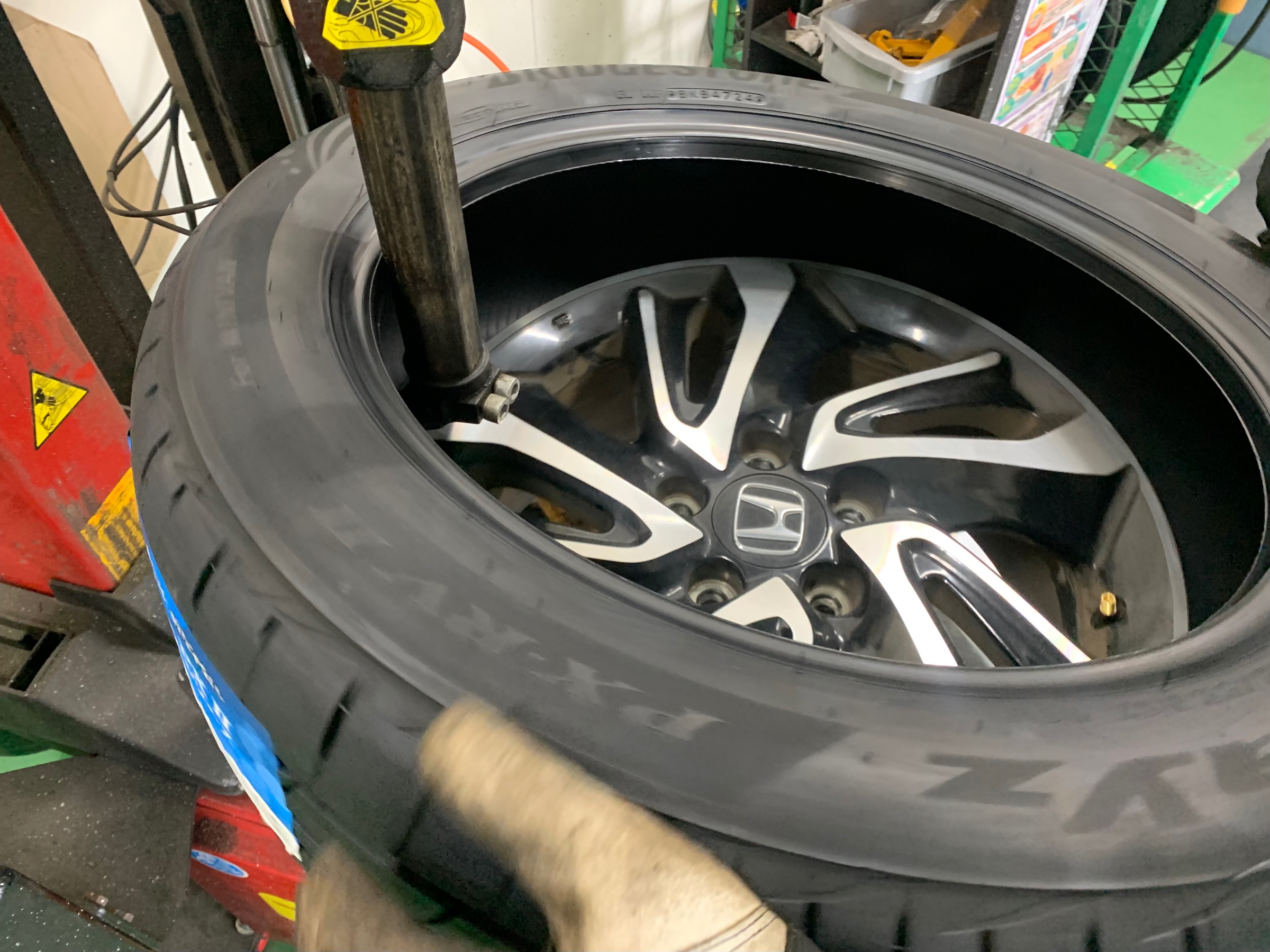 ↑タイヤチェンジャーを使い、素早く丁寧に組み替えていきます