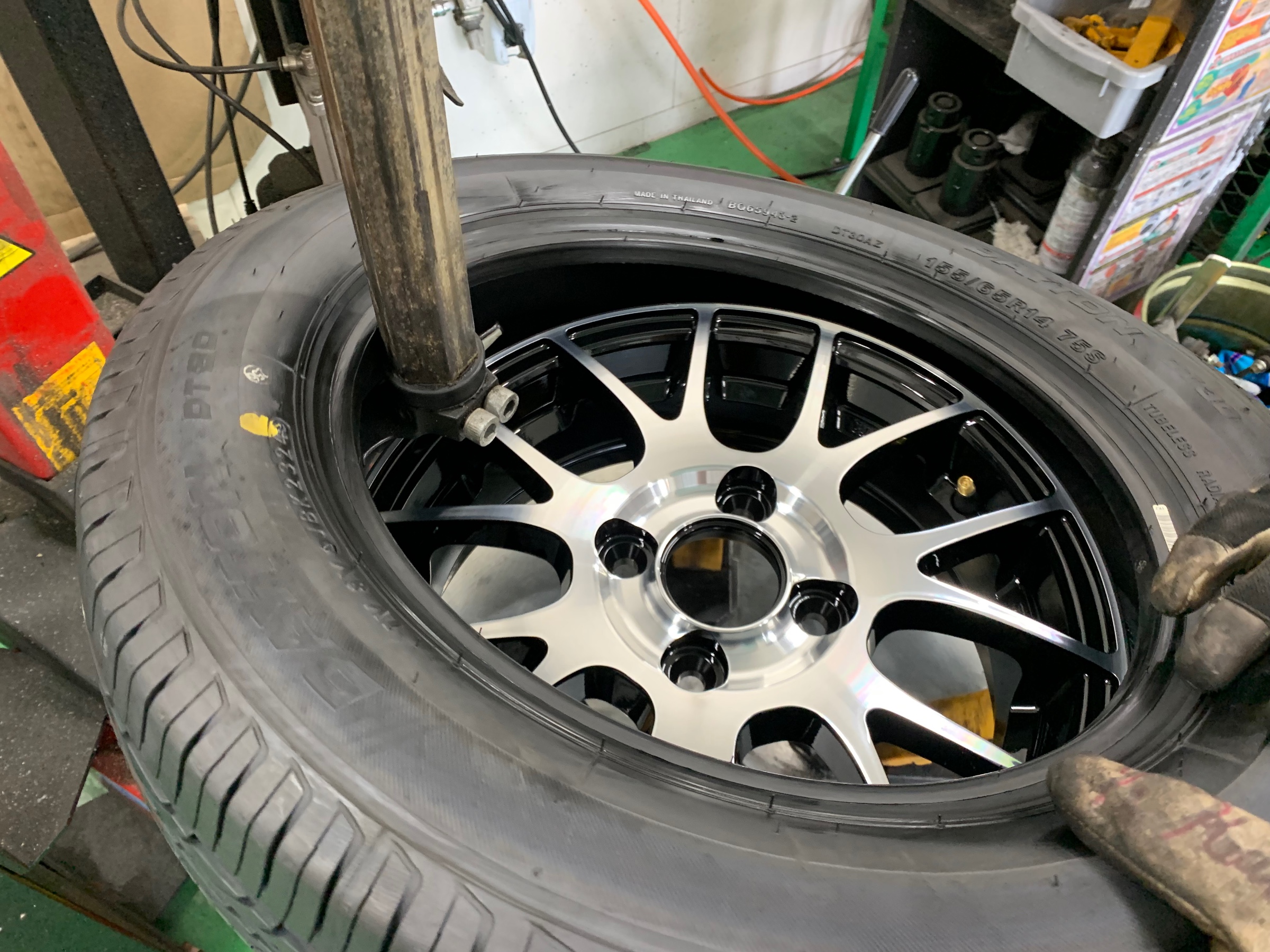 ↑タイヤチェンジャーを使い素早く丁寧に組み替えていきます