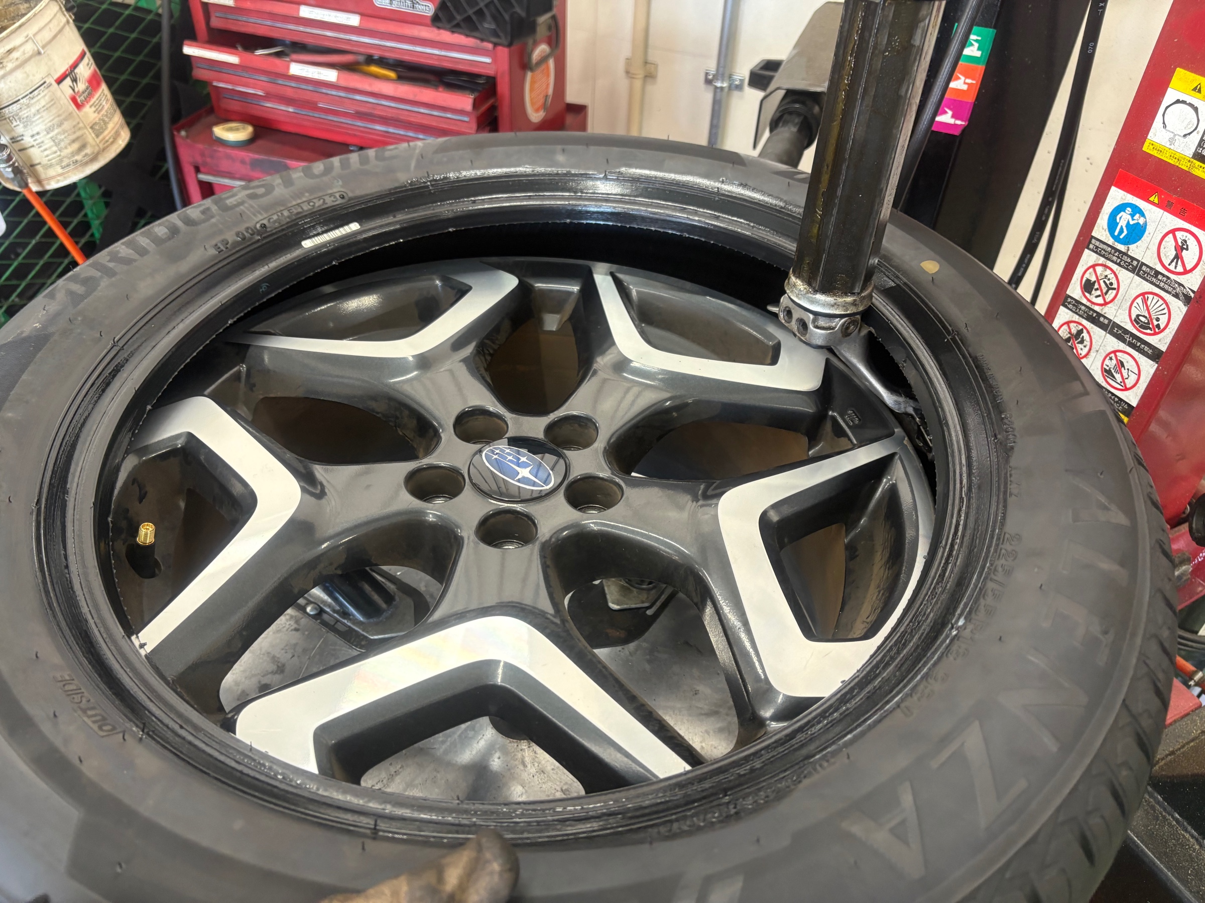 ↑タイヤチェンジャーを使い、素早く丁寧に組み替えていきます