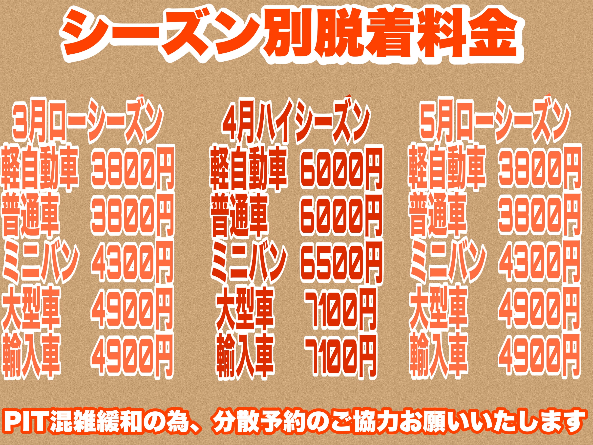 本日は、脱着工賃シーズン価格導入のお知らせですm(_ _)m