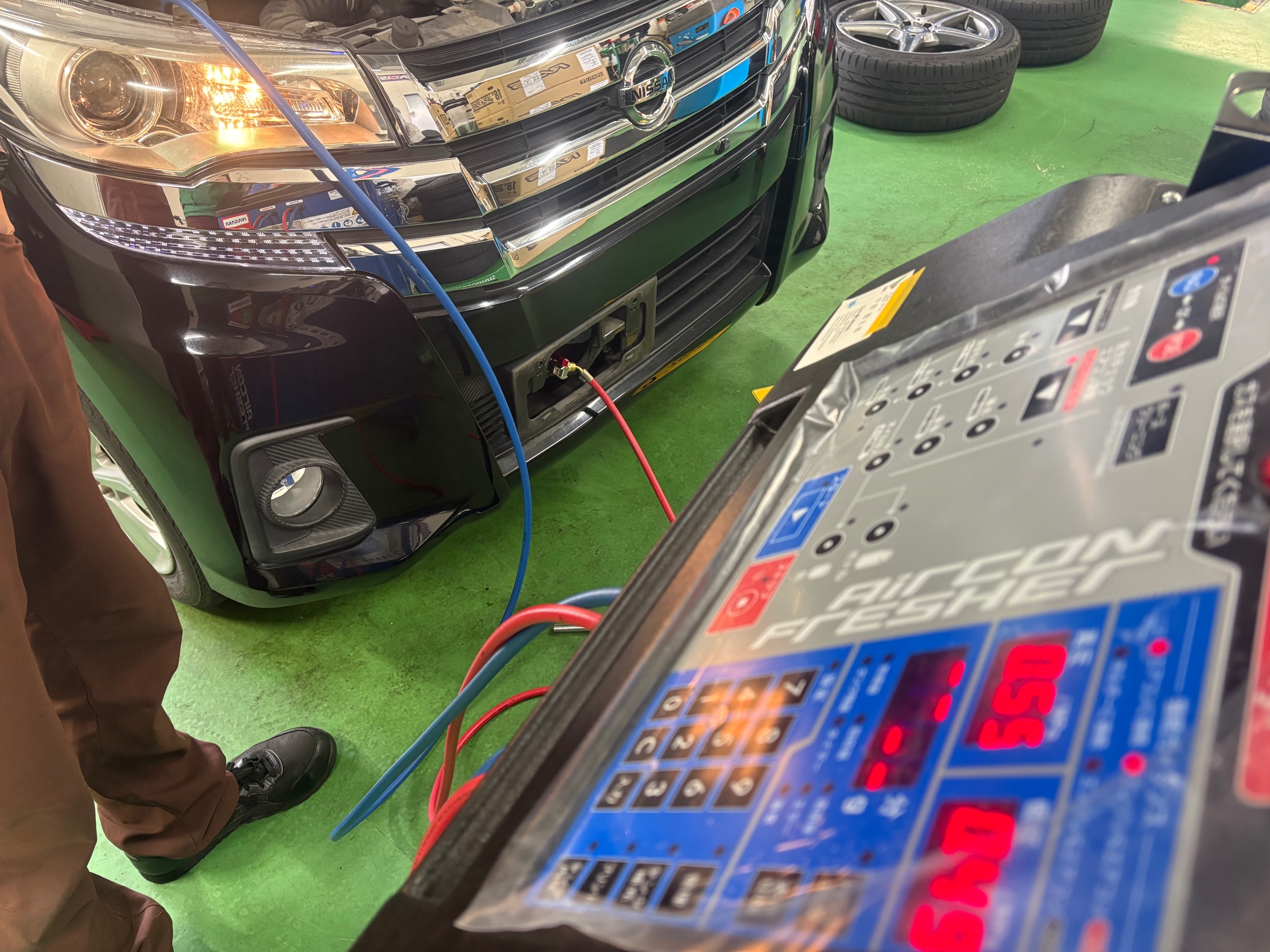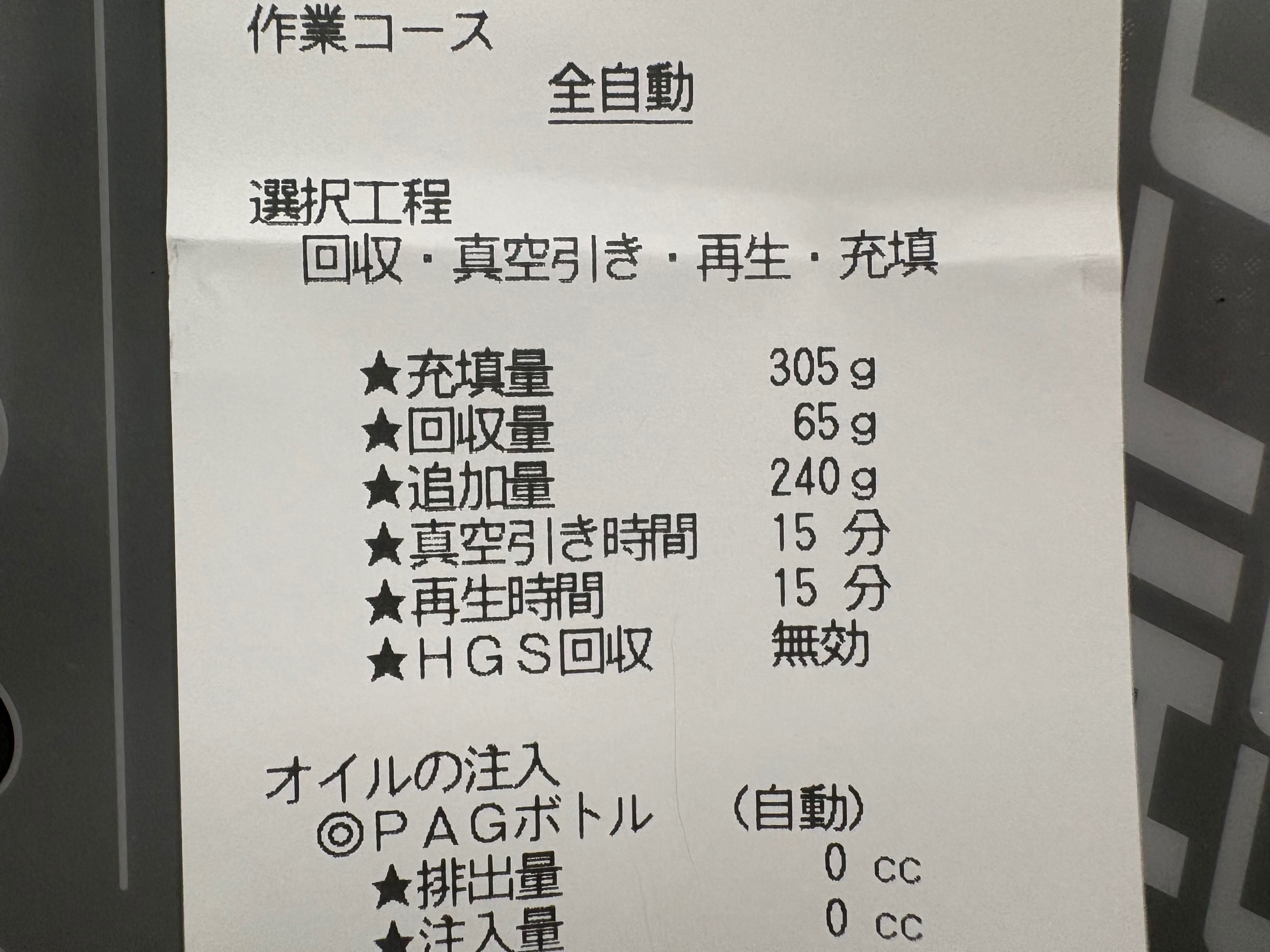 こちらの機械は測定と同時に足りない分のガスを補充してくれるので、あとは繋いだホースを外して作業終了です!