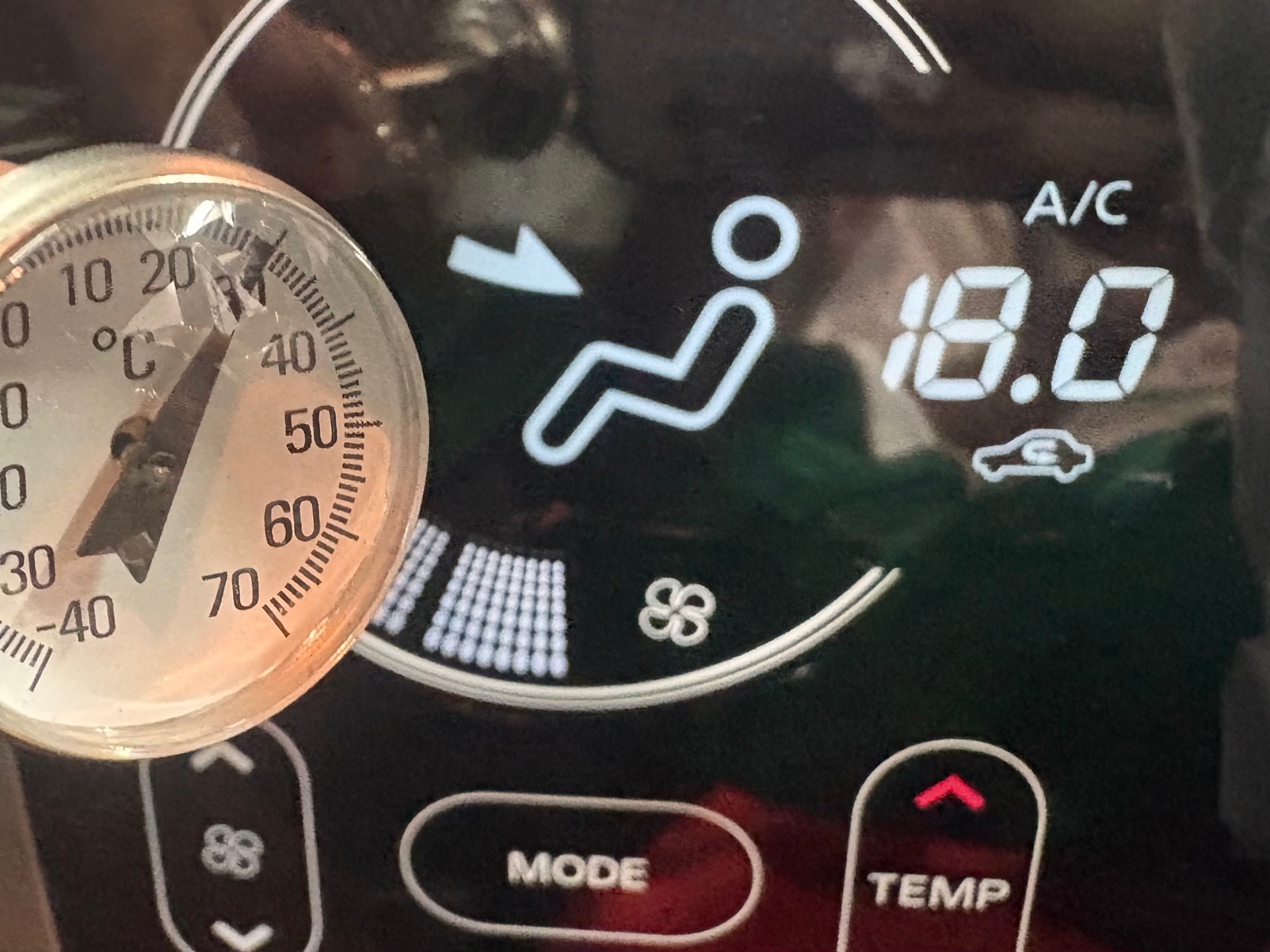 ぬる〜い風が吹いているだけの車内です。