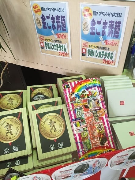 只今、タイヤ館では14日まで「夏のドライブ STEP UP フェアー」と題しまして