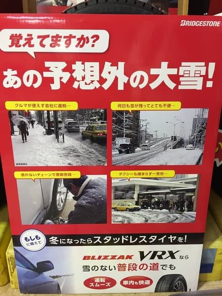 しかも、雪が降る予報が出ればさらに混み合いますし、スタッドレスタイヤの品薄も