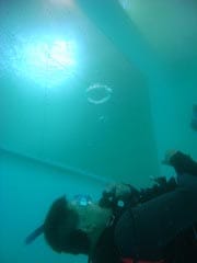 ちなみにプール水深5Mで寝転がって上向きに吐いています。