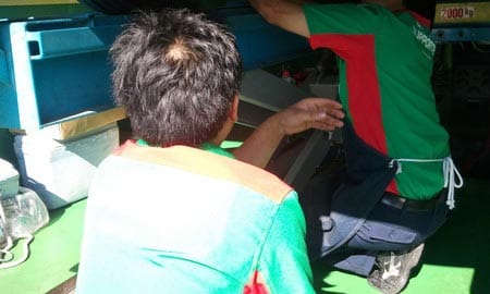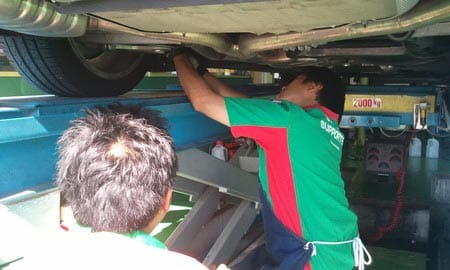 さすがに3台目をアライメント調整する頃には、姫路店名物西日がピットの奥まで