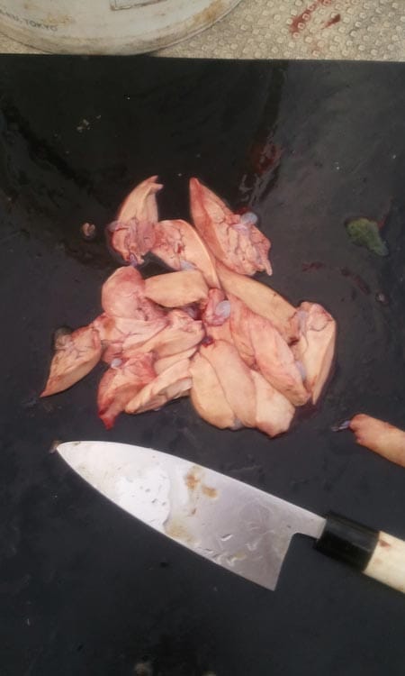 そんな内臓(特に肝)はカモメにとっちゃご馳走なのです。ご馳走にありつこうと