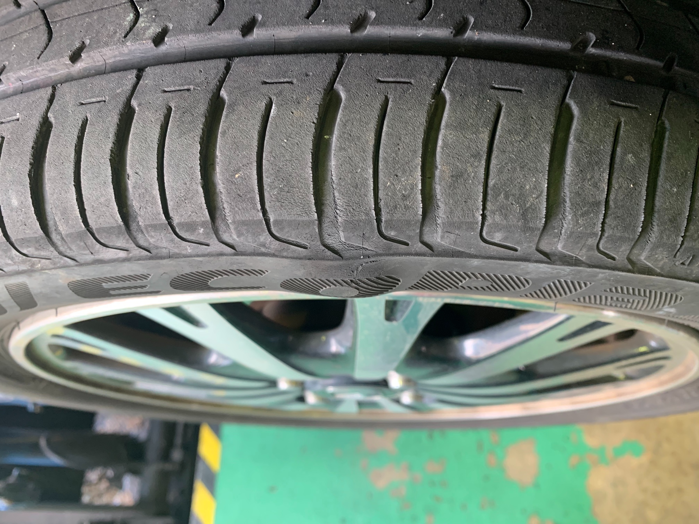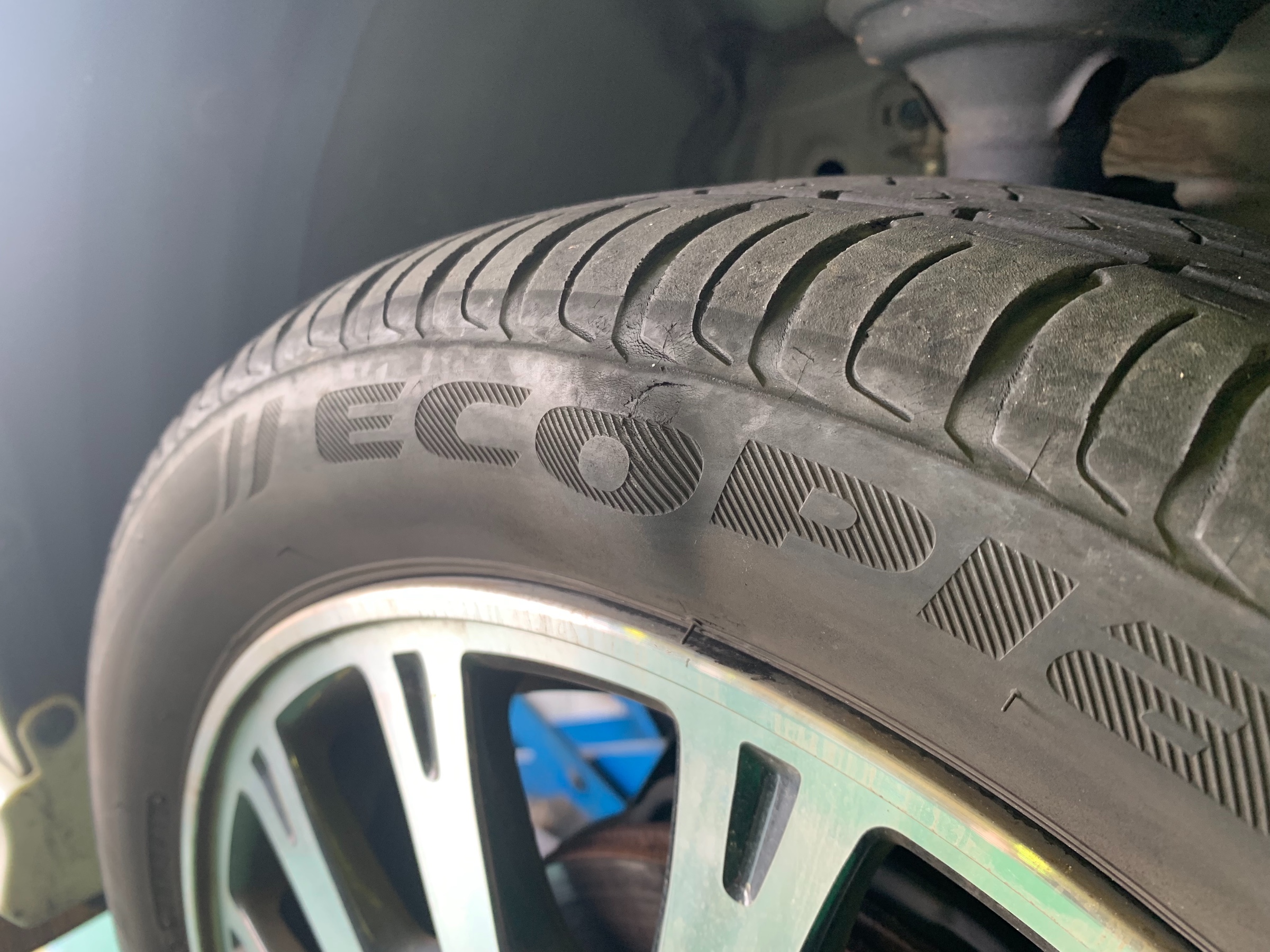 こちらの車両は、右前を縁石ヒットされピンチカット症状になってました。