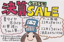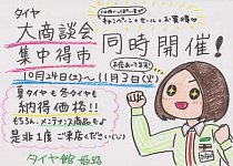 こんにちは!田中です(^o^) いよいよ冬がそこまで来ているような ひんやりとした風が吹くようになりましたね~。 私はジャンパーがないと寒くて仕方ないのですが 男性スタッフは「長袖あついね!」だそうです。 つよい…。 さて、今回は 今月24日から好評開催中のセールのご案内です! タイヤ大商談...