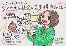 こんにちは、田中です(^o^) 今日は久しぶりに、 丸一日しっとりとしたお天気でしたね。 これでまた一段と寒くなるのでしょうか…。 タイヤ大商談会&集中得市も、 いよいよ3日までとなっております! とってもお得なセールとなっておりますー! あれ?3日って火曜日だから、 定休日じゃないの? と、...