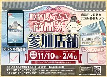 みなさん、こんにちは! 山中ちゃんですd('∀'*) 今回は、本日11/10〜始まりました! 姫路しらさぎ商品券 のご案内です! 当店でも、こちらの商品券ご利用いただけます! お得に、タイヤ・ホイール購入してみませんか? もちろん、メンテナンス料金にもご利用いただけます! タイヤ館 姫路 と一緒に...