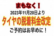 【お知らせ】タイヤの脱着料金改定、まもなくです!