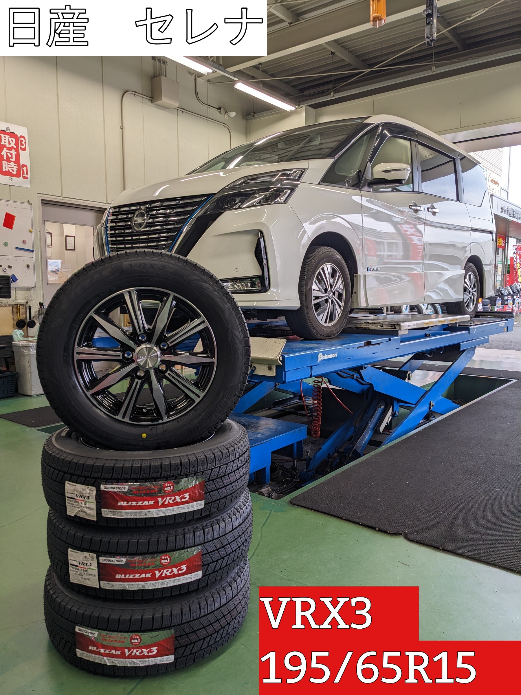本日は日産セレナのスタッドレス装着をご紹介します。